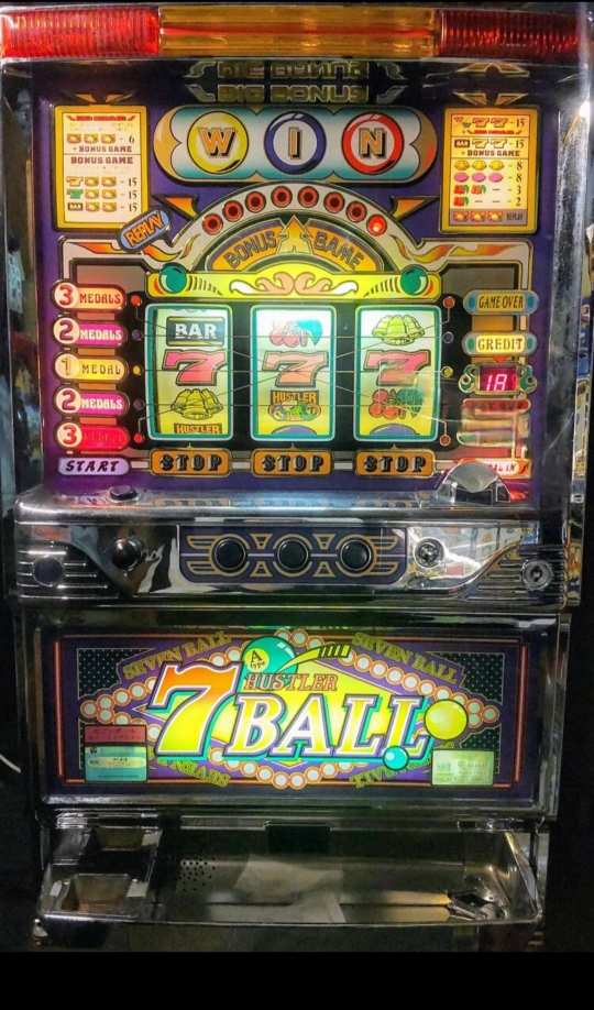 Selling a vintage Big Bonus 7 Ball slot machine. This stunning slot machine is a collector's gem, a vibrant testament to the golden age of gaming. Its eye-catching design bursts with rich colors and playful graphics, featuring iconic symbols like sevens and bars that evoke nostalgia. The intricate detailing speaks to the craftsmanship of a bygone era, while the inviting “BONUS GAME” banner adds an exciting twist. Every lever pull resonates with the thrill of chance, making it not just a piece of machinery but a captivating work of art, perfect for any enthusiast seeking to relive the exhilarating charm of classic casinos.
