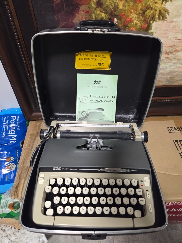 Selling a vintage silent Smith-Corona Galaxie II typewriter! It comes with its original carrying case and the manual. This classic typewriter is in good condition and would be great for collectors or anyone who appreciates vintage office equipment