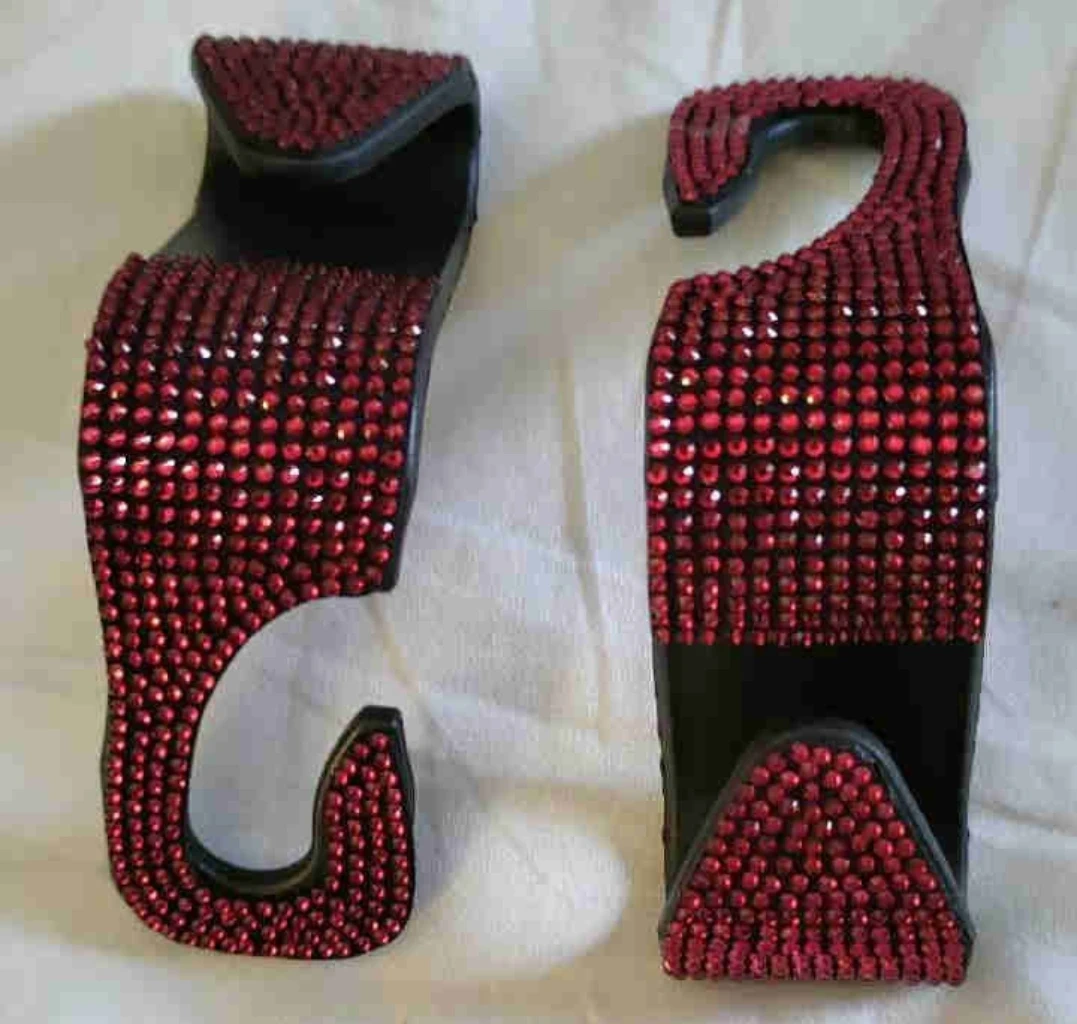 Add some sparkle to your car with these bling car headrest hooks! They're perfect for hanging bags, purses, or anything else you need to keep off the floor. The hooks are decorated with red rhinestones, adding a touch of glamour to your ride
