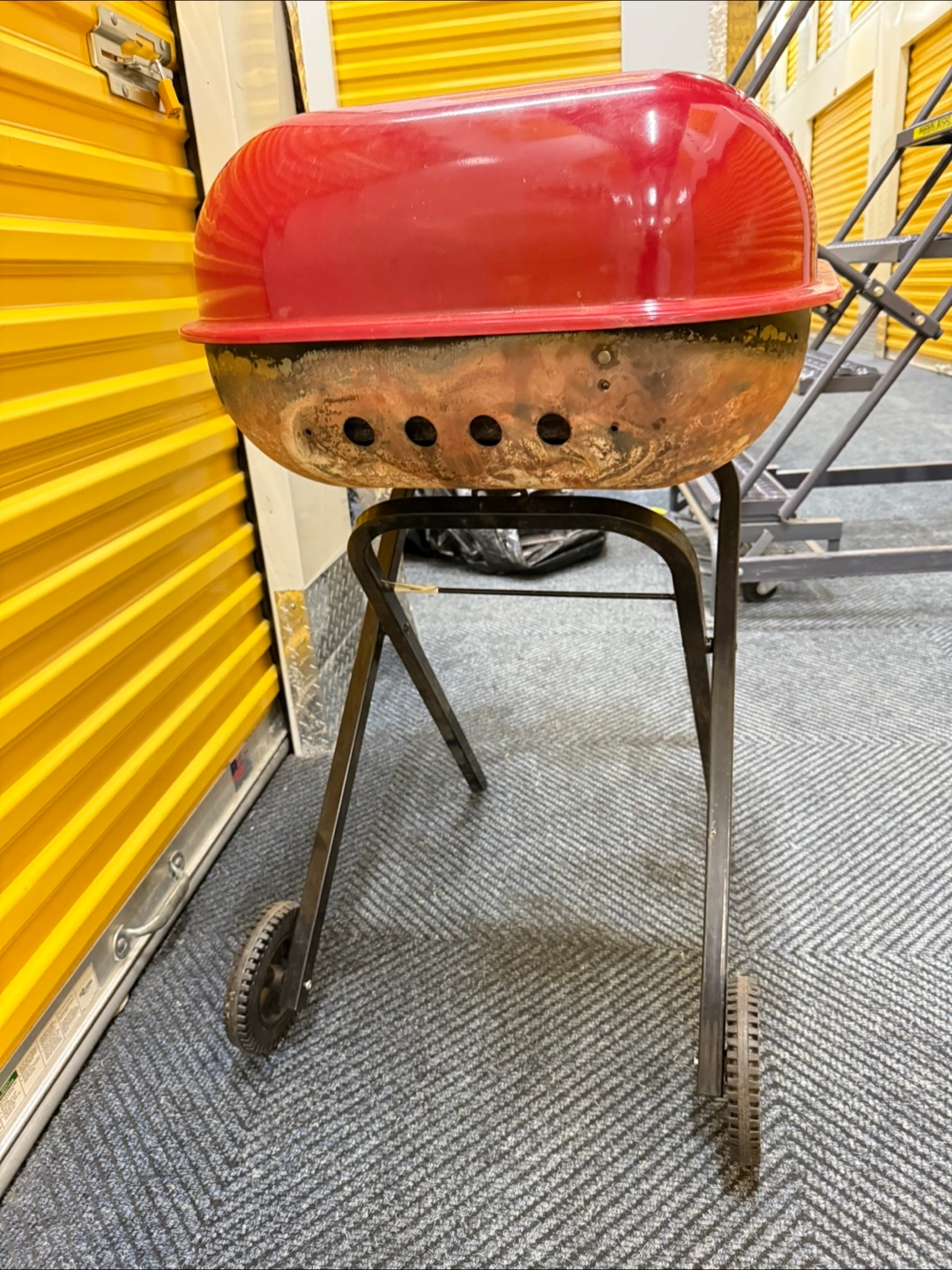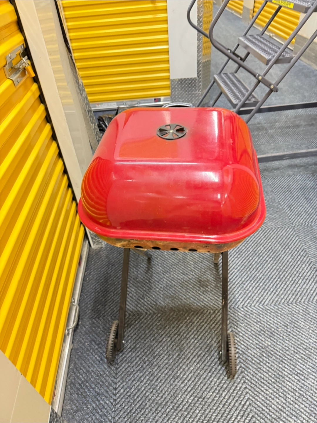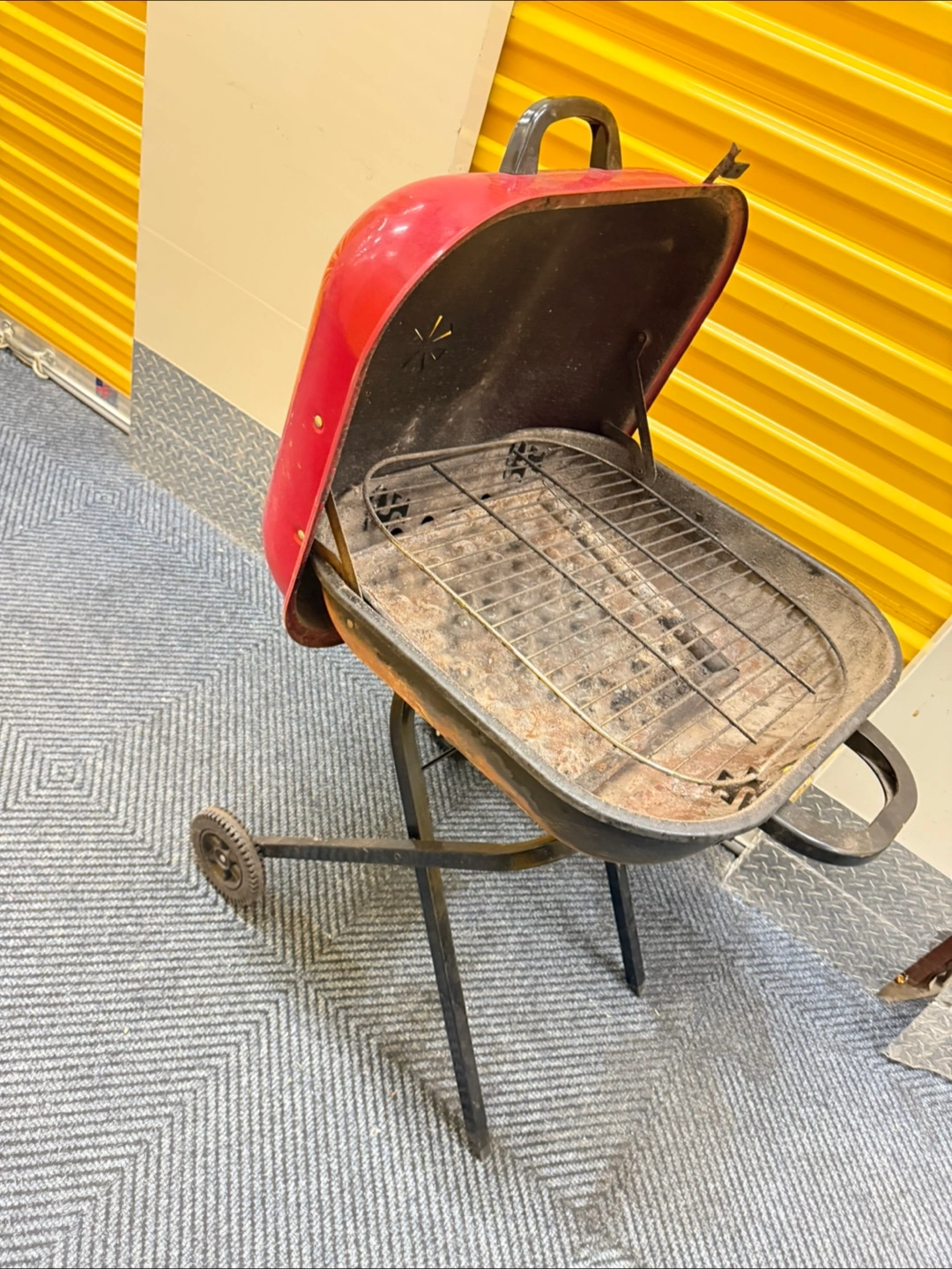165Selling a red portable BBQ grill. It has some signs of use, as you can see in the photos, but it's still functional. Perfect for small spaces or taking on the go!