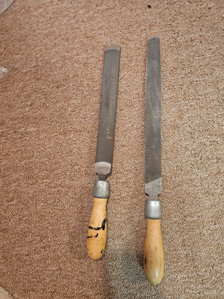 Buy & SellVintage Beaver & Unbranded Metal FilesVintage Beaver & Unbranded Metal Files$20Selling two metal files. One is a Beaver brand file, and the other is unbranded. Both have wooden handles and show signs of wear from use.EstadoGoodWHERE TO MEETCheck LocationView MapSELLERverifiedchrisMaspeth781 review0 chats·0 favorites·3 viewsSEND CHAT TO SELLERHi chris! I’m interested in your listing.Hi chris! I’m interested in your listing.Get the Karrot app to chatSign In to chat