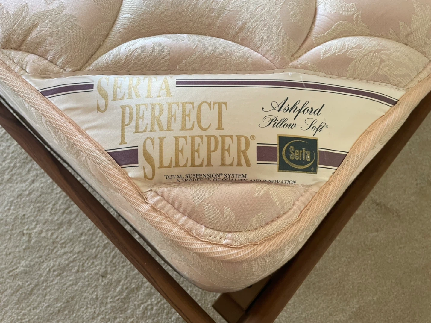 Serta Perfect Sleeper Ashford Pillow Soft mattress. It's a queen size wire spring mattress. 10” thick. Total Suspension System.