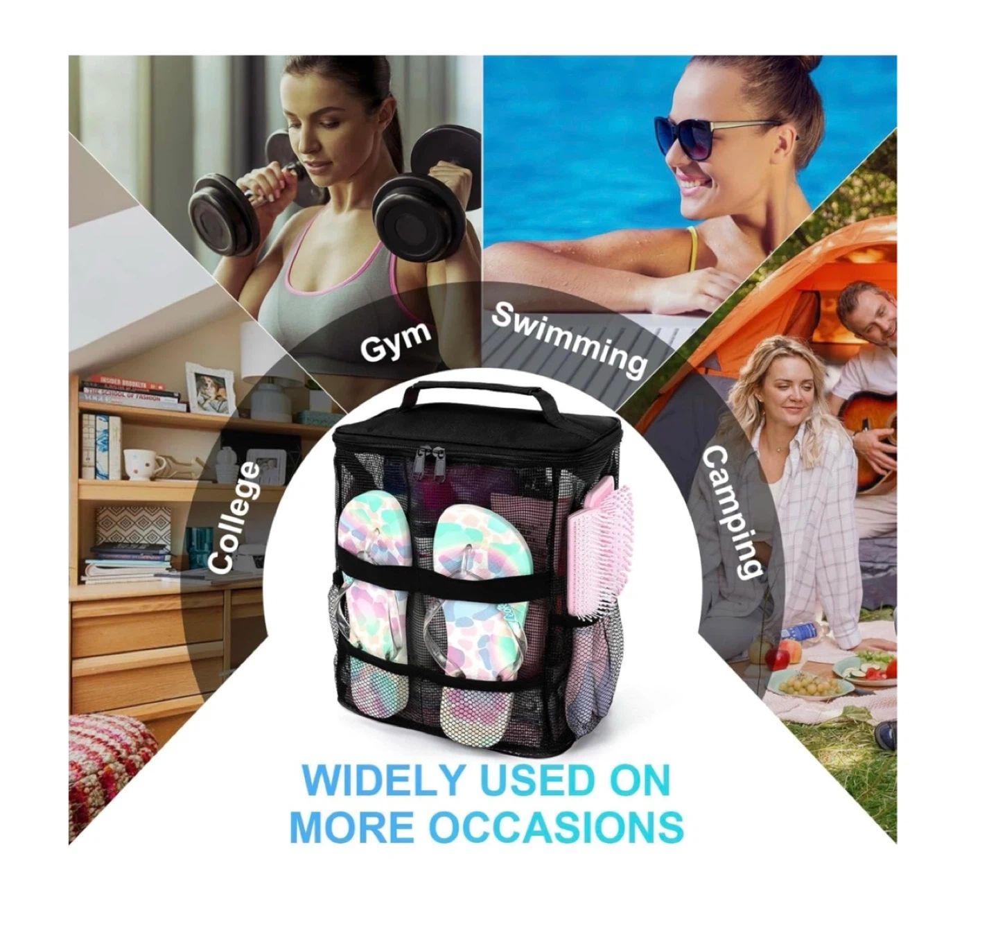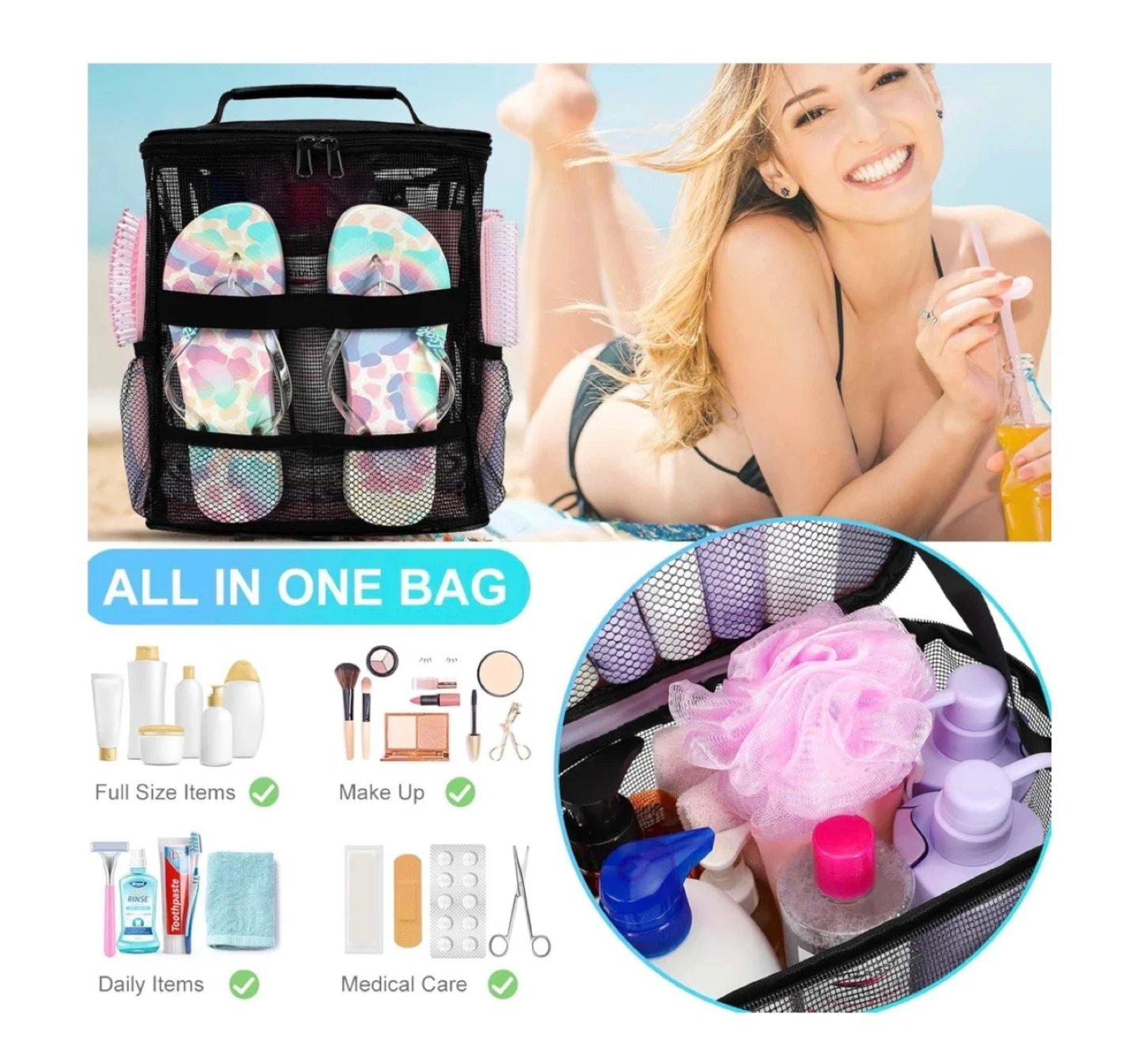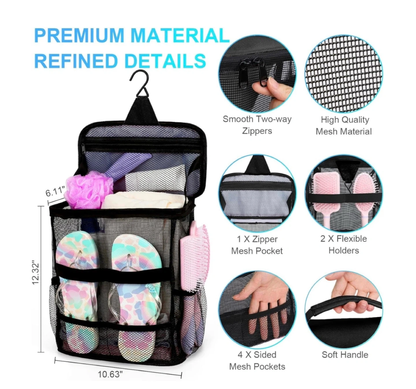 Brand new Dorm Room Essentials for College Students Girls Boys Guys, Large Capacity Mesh Shower Caddy Portable with Hanging Hook, Quick Dry Shower Bag for Camping, Beach Essentials, Birthday Gifts for Women Men