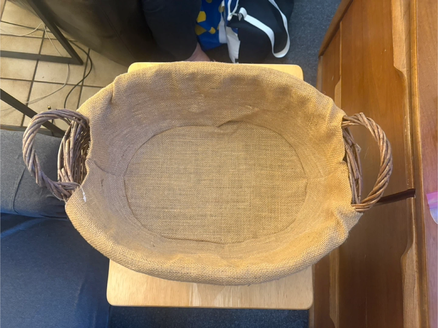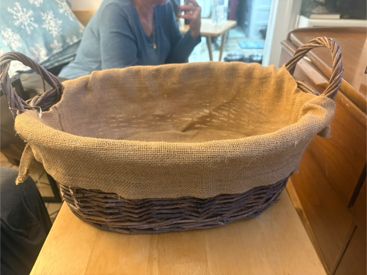 Wicker Basket with Burlap Liner