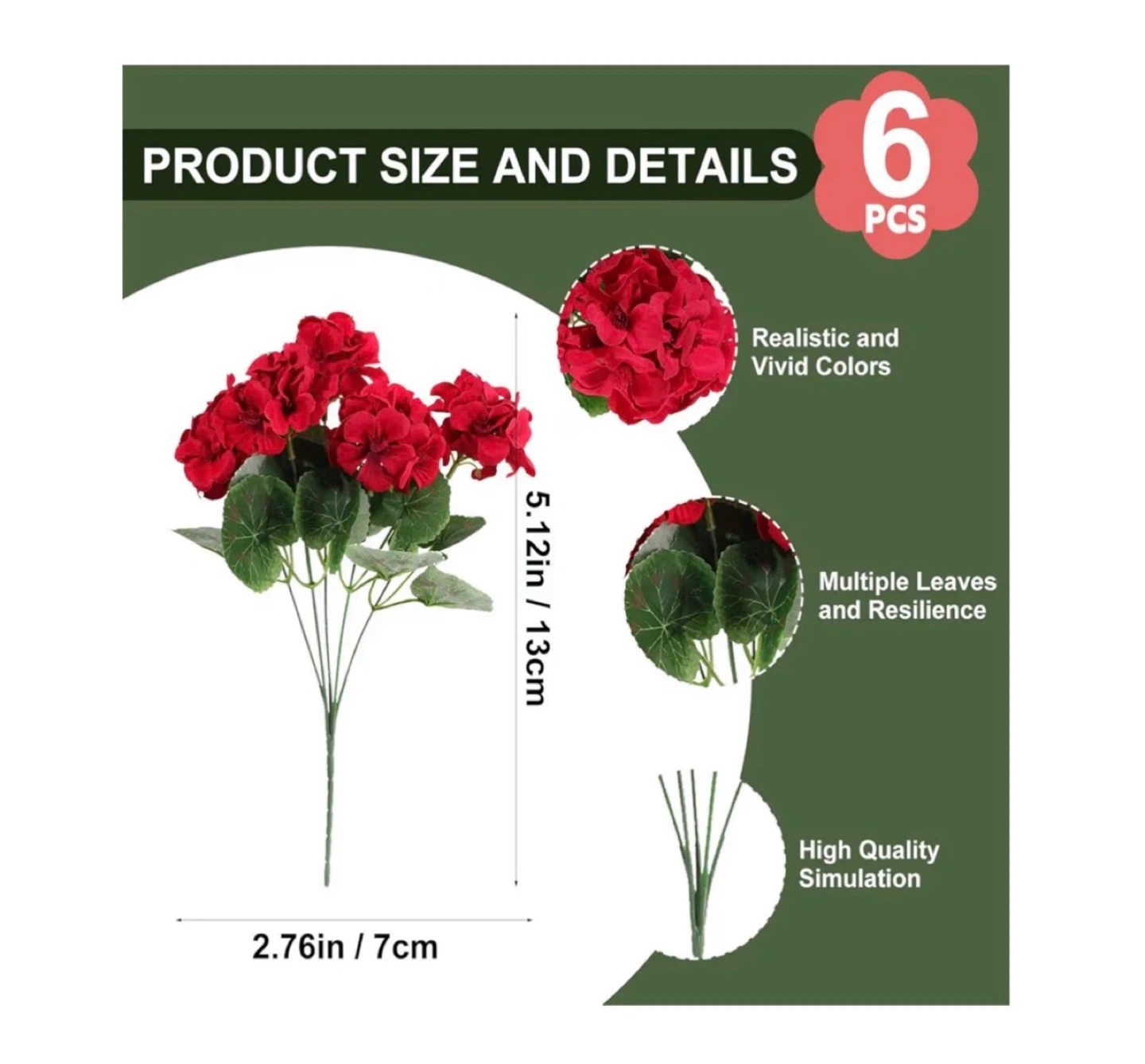 Brand new Outdoor Artificial Flowers Red 12 Bundles: Maintenance-Free, Near-Identical to Natural Counterparts, Long-Lasting Vivid Color Retention for Months, UV-Resistant