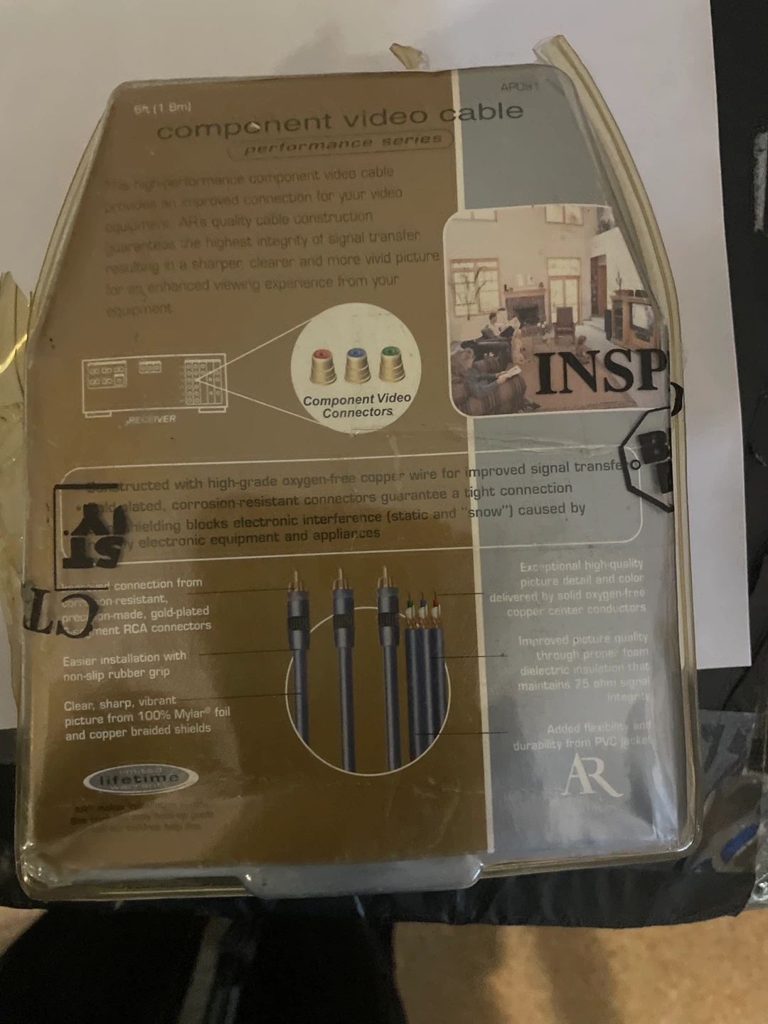 Selling a brand new AR component video cable, still in its original packaging! This 6ft cable is designed to provide an improved connection for your video equipment, ensuring high integrity signal transfer. It features high-grade oxygen-free copper wire and corrosion-resistant, gold-plated RCA connectors for a clear, sharp, and vibrant picture. The cable also has non-slip rubber grips for easy installation and added flexibility with a durable PVC jacket.