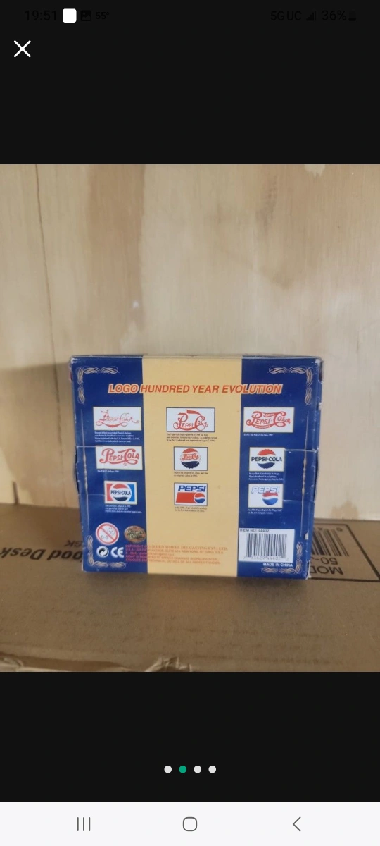 Collectible Pepsi-Cola airplane. Part of the Logo Hundred Year Evolution series. Comes in original box. Great for collectors.