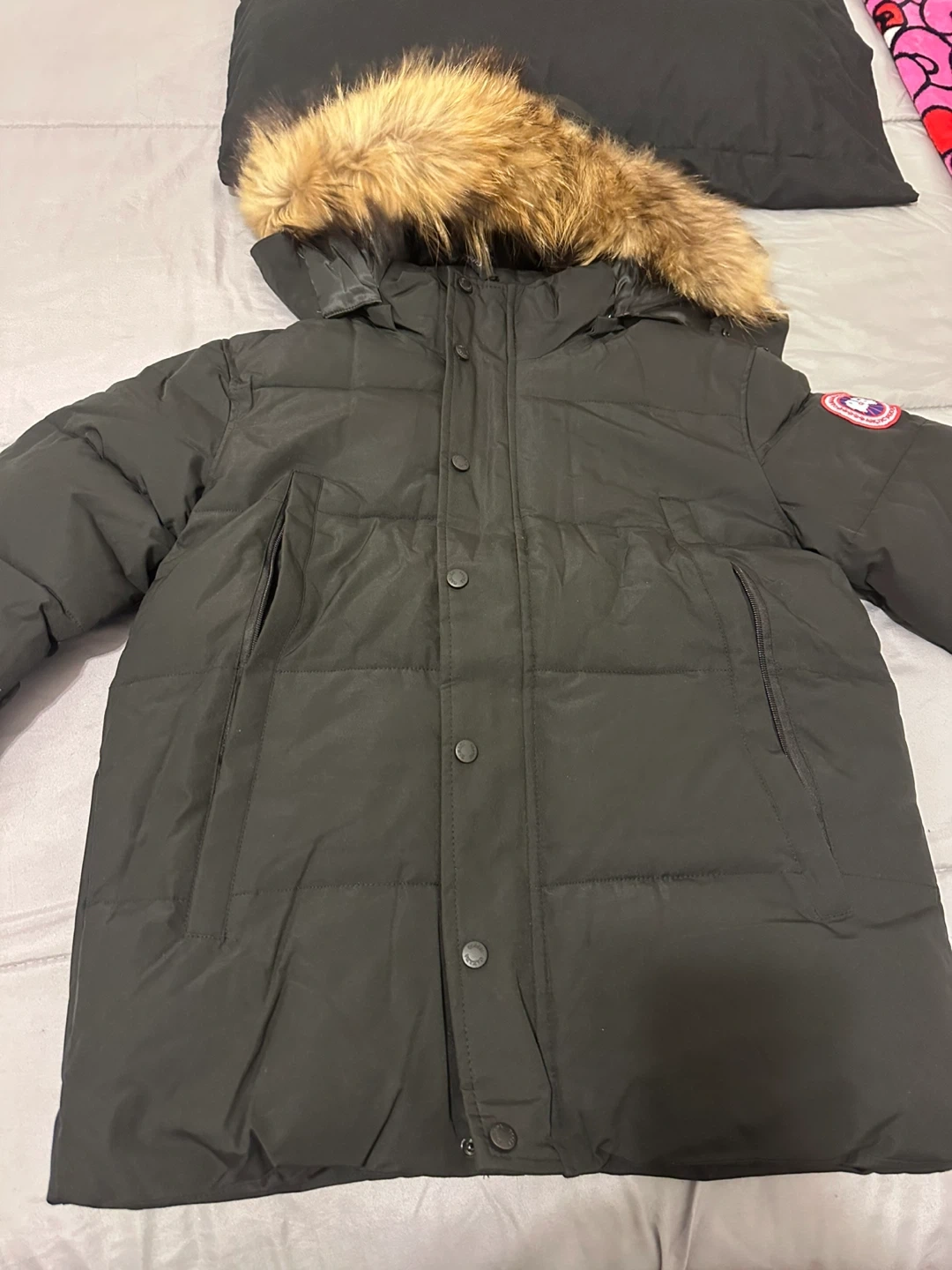 Selling this Canada goose coat, in size XS, it is new and does not have a single use. I'm selling it because I'm a girl and I accidentally ordered it online in men's size, and it was too big for me. It's ideal for a man whose size is XS