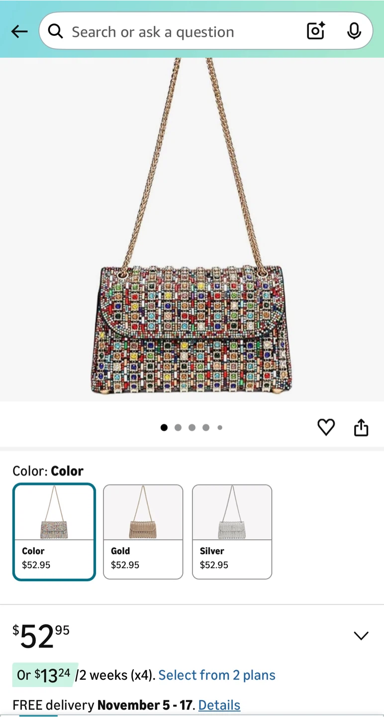 This colorful tweed chain shoulder bag is so cute! It has a gold chain and is a great size for carrying your essentials. The bag measures approximately 10.83 inches in height, 8.27 inches in width, and 2.36 inches in depth. It weighs about 0.943 lb