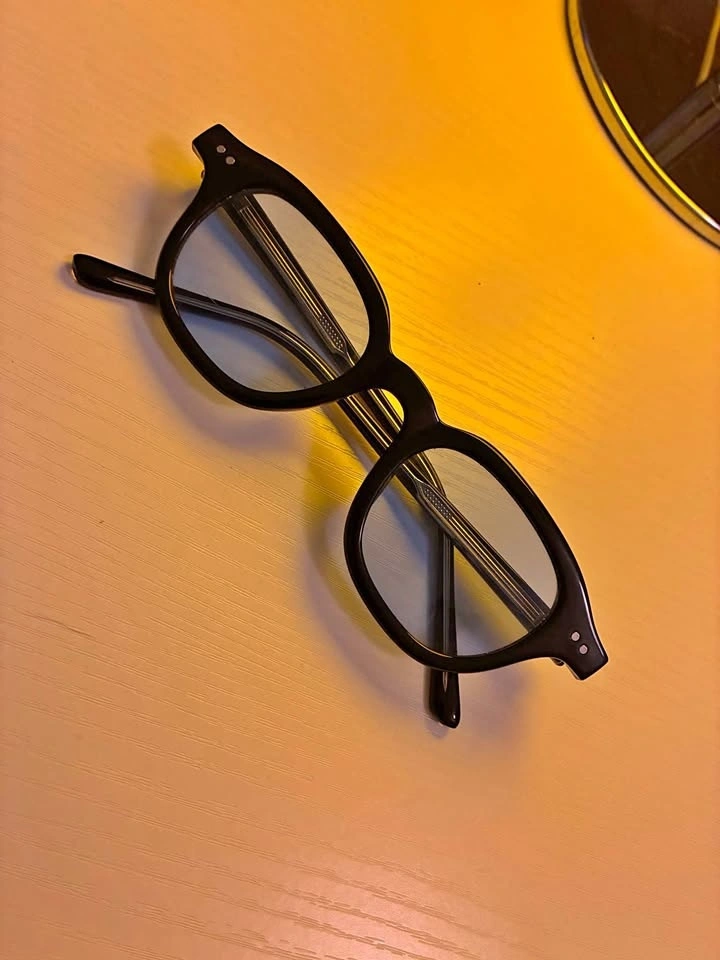 Black sunglasses frames with a stylish light blue lens. These frames appear to be made of a durable plastic material. One lens has a tiny scratch shown on the photo. Therefore the price is cheaper.