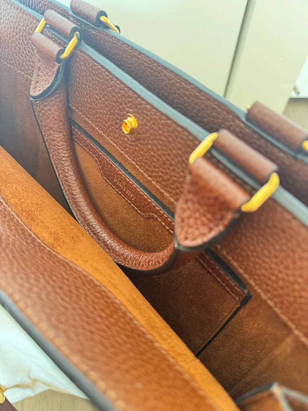 Rich chestnut brown color. Spacious enough for 13” laptop.