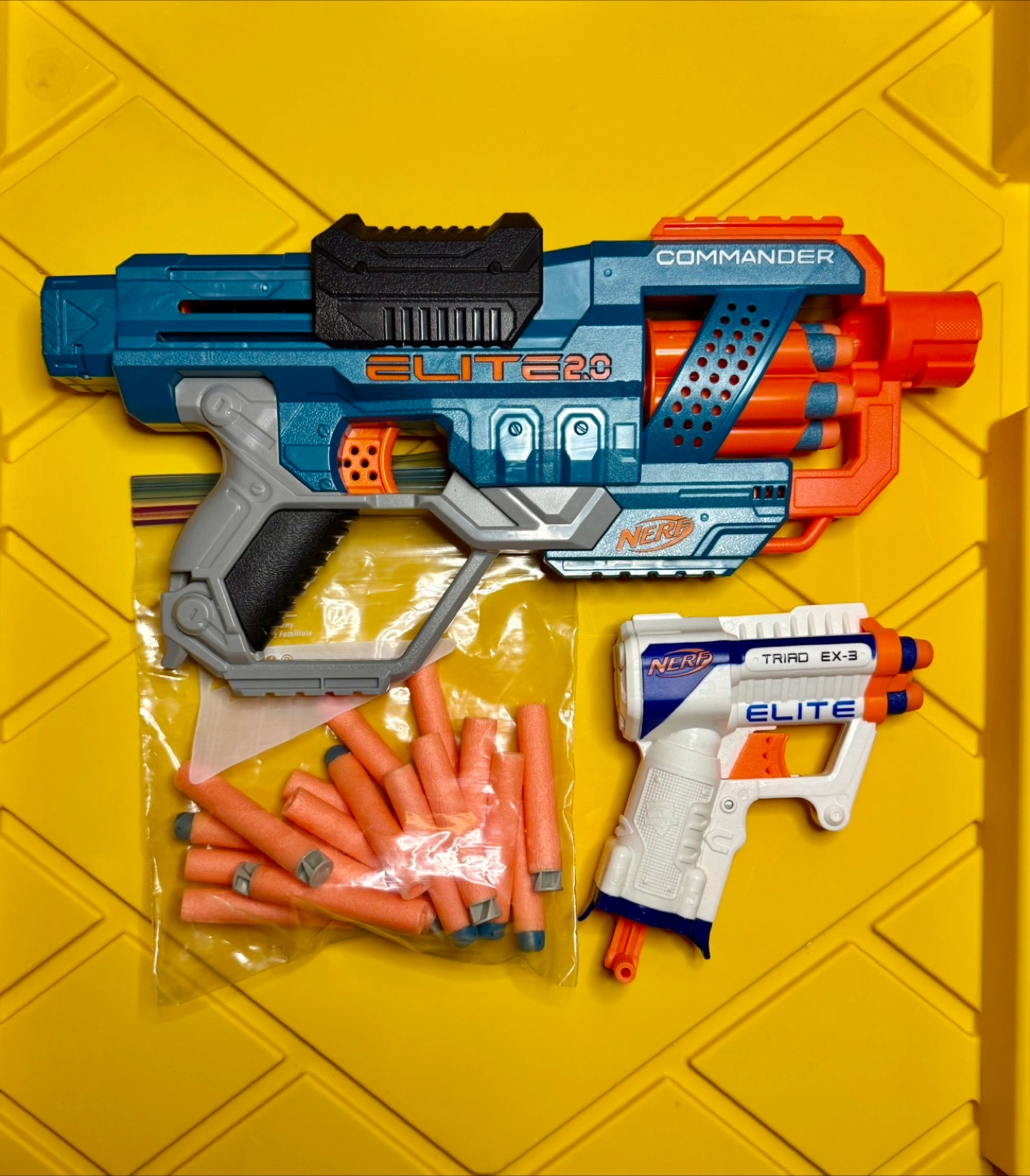 Selling a set of Nerf blasters! Includes the Elite 2.0 Commander RD-6 and a Triad EX-3 blaster. Also comes with a bag of Nerf darts so you're ready to play