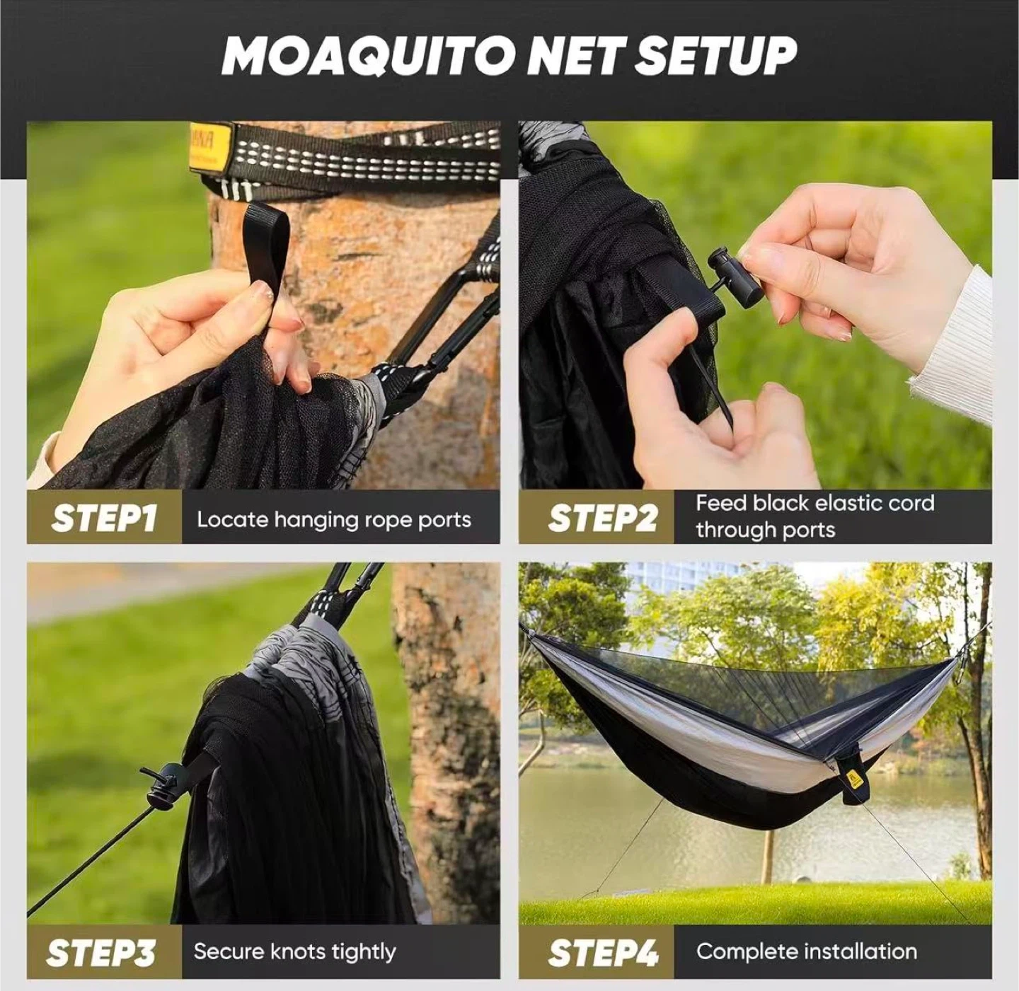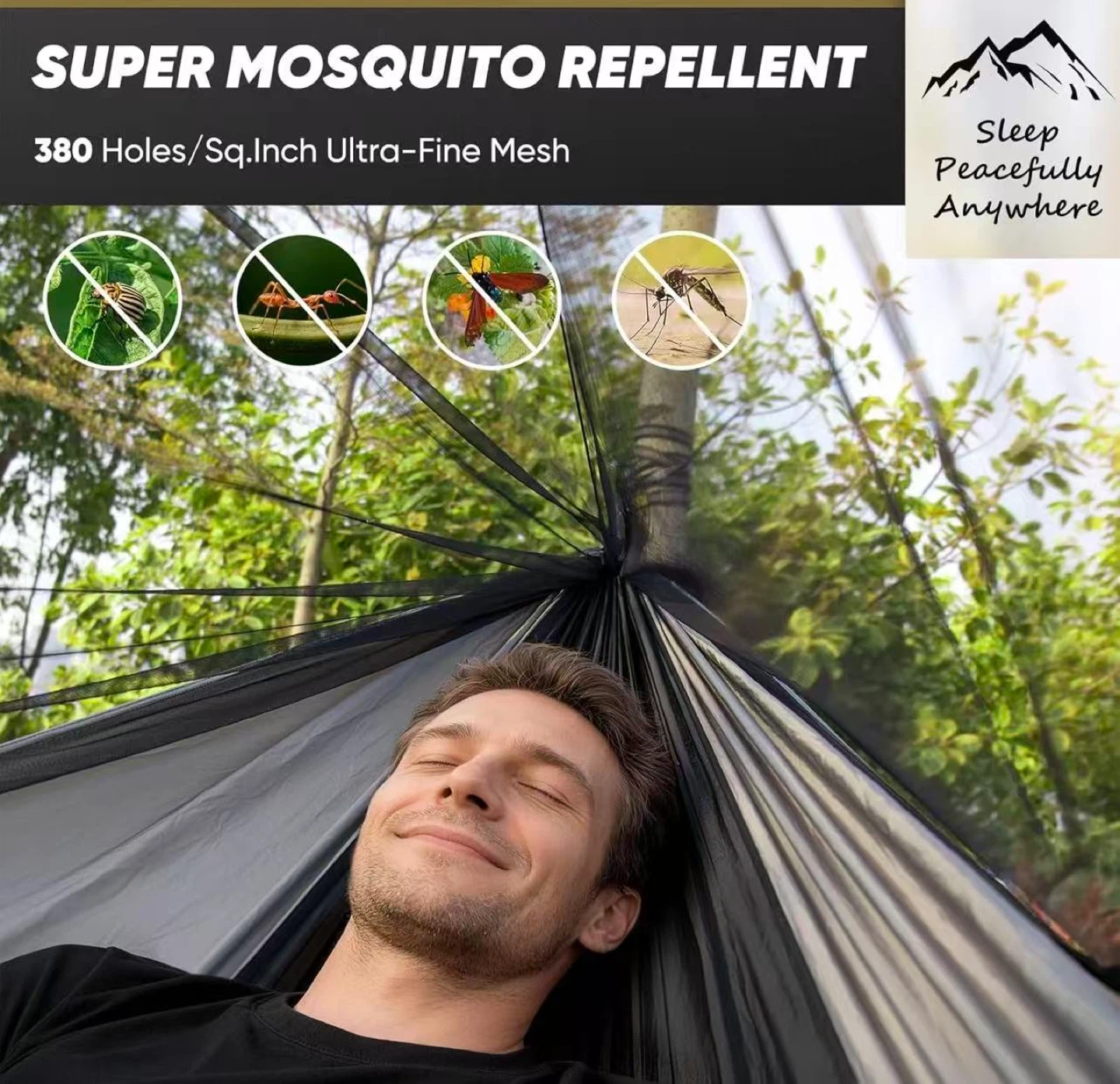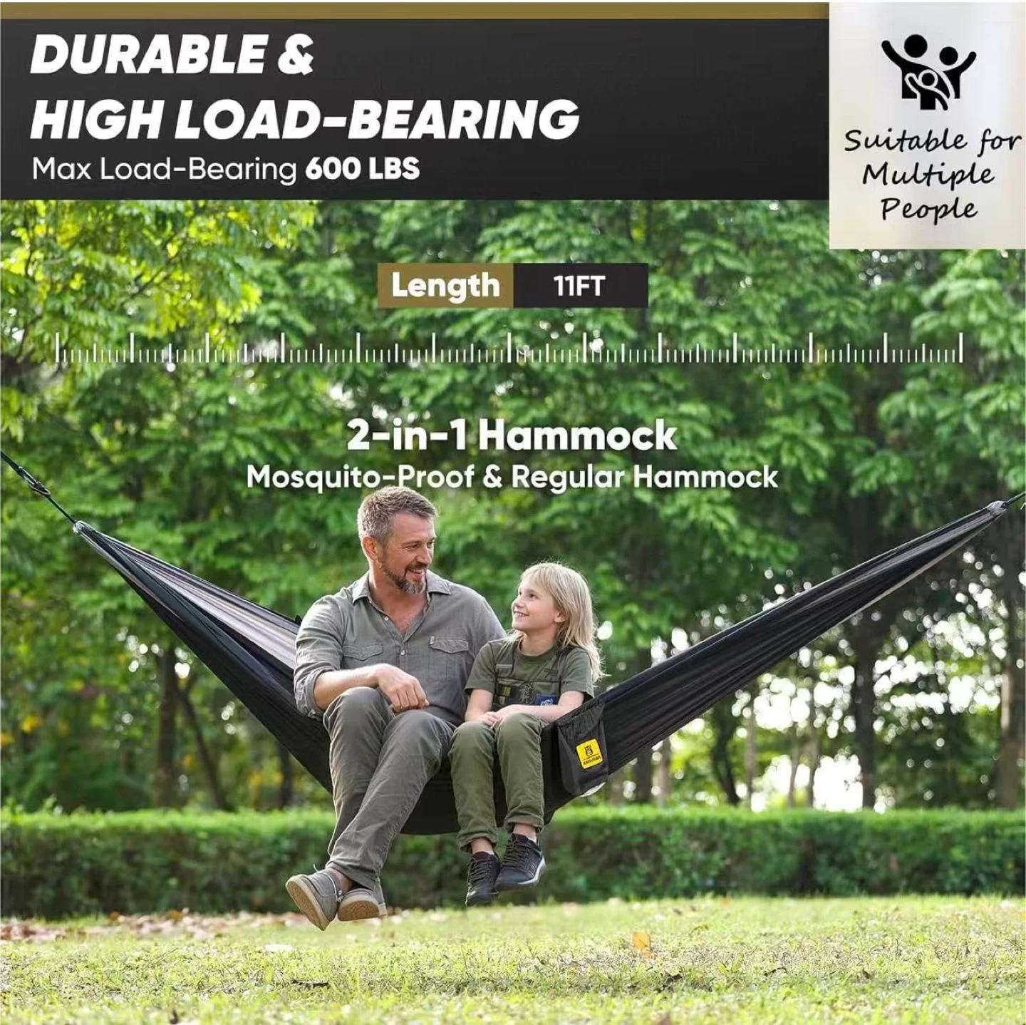 2-in-1 Hammock - Mosquito-Proof & Regular, 11FT Length, Black