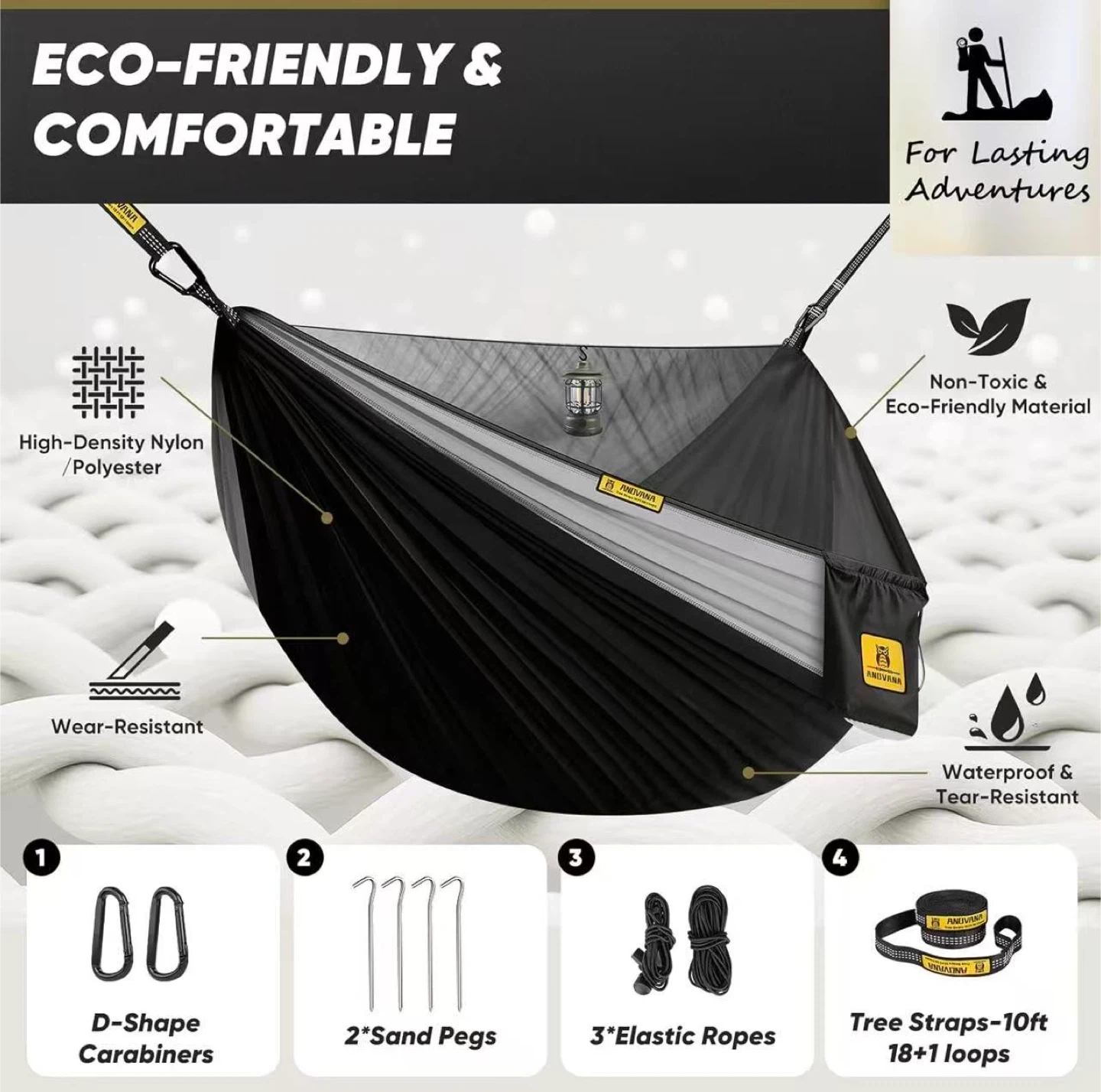 Camping Hammock with Mosquito Net, 600 lbs Portable Hammock with Tree Straps,2-in-1 Double/Single Travel hammocks Tent for Outside/Indoor/Backpacking/Beach-Black&Grey