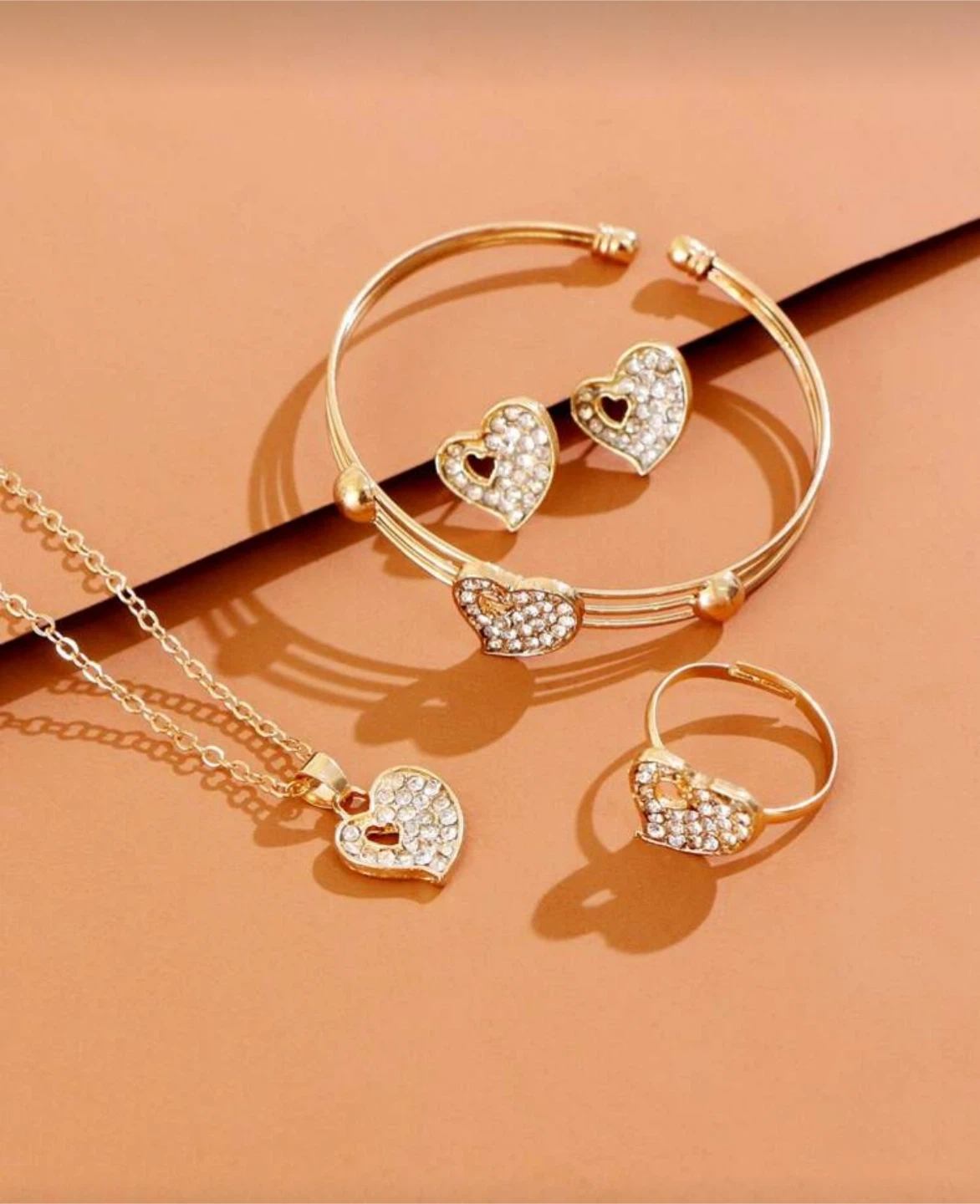 Heart Jewelry Set (Necklace, Bracelet, Ring, Earrings)