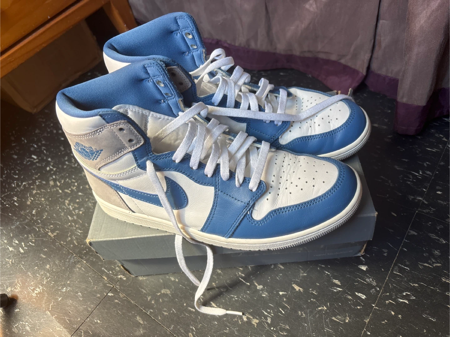Selling a pair of Nike Air Jordan 1 High Hyper Royal in size 11. The shoes are in good condition and come with the original box. The manufacturing date on the tag is 2022 June 08 USED