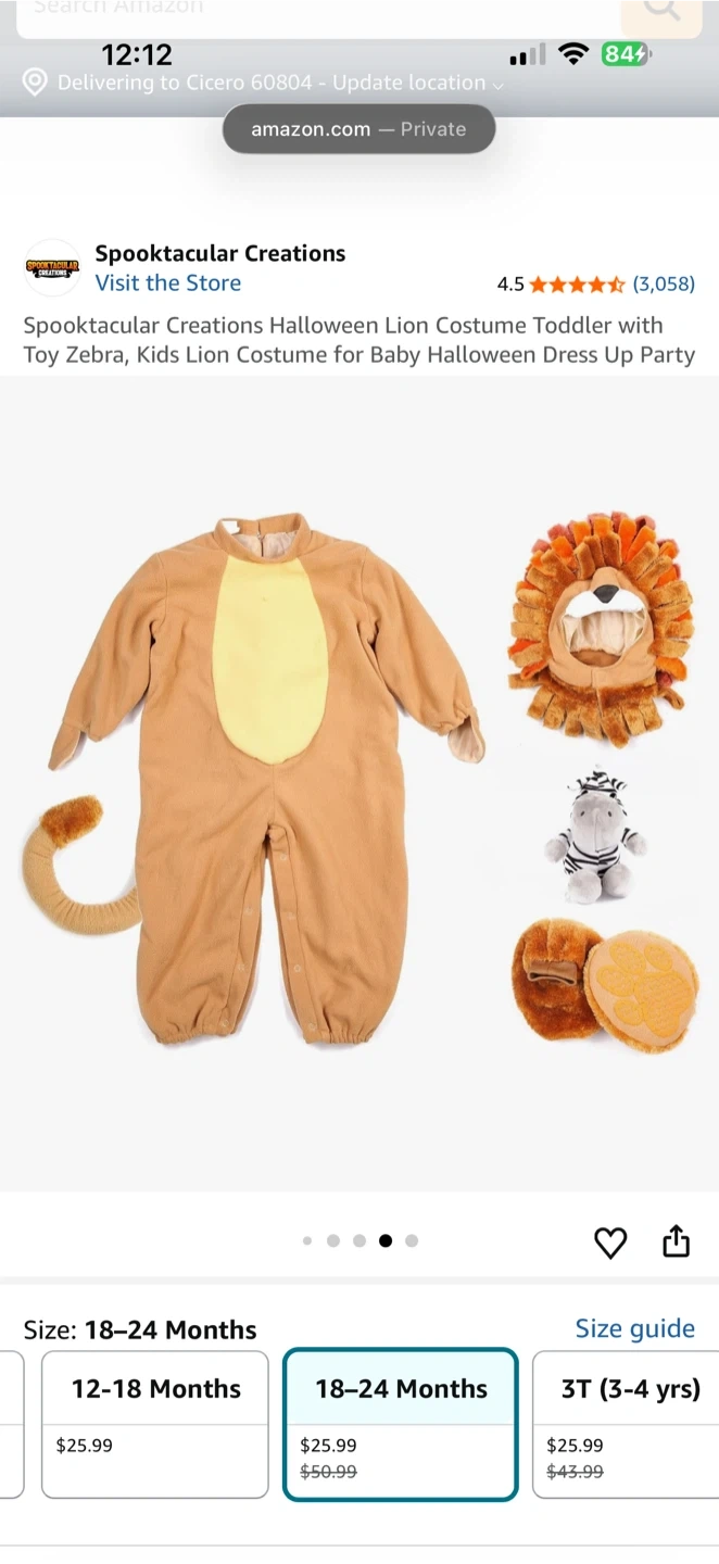 This adorable lion costume includes a lion jumpsuit, a lion hat, and a pair of lion booties. It also comes with a plush toy zebra. Perfect for Halloween or dress-up parties!