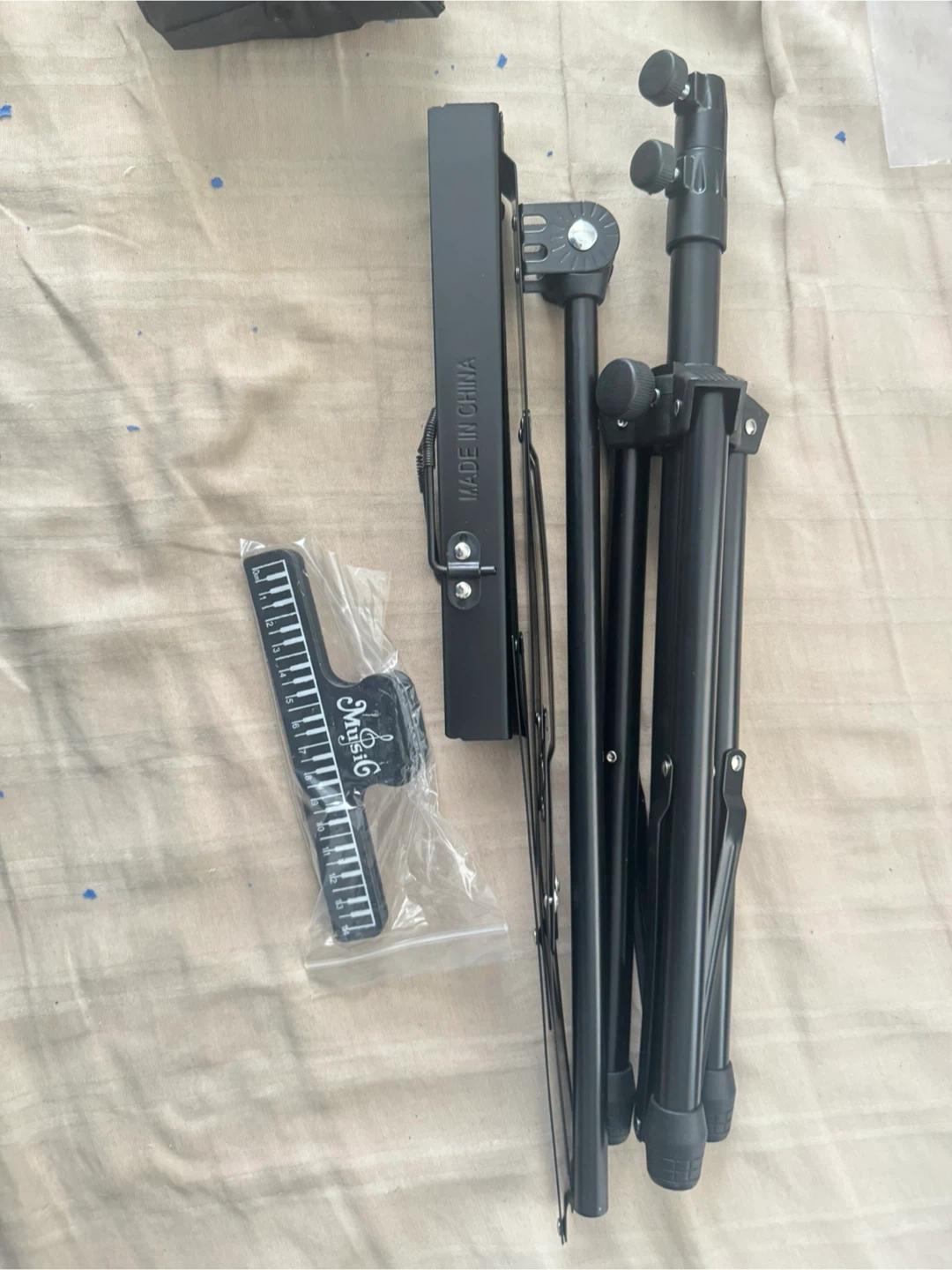 Selling a Kasonic music stand that's in great condition! It comes with its original box and a carrying bag for easy transport. Check out the photos for a closer look at the installation guide