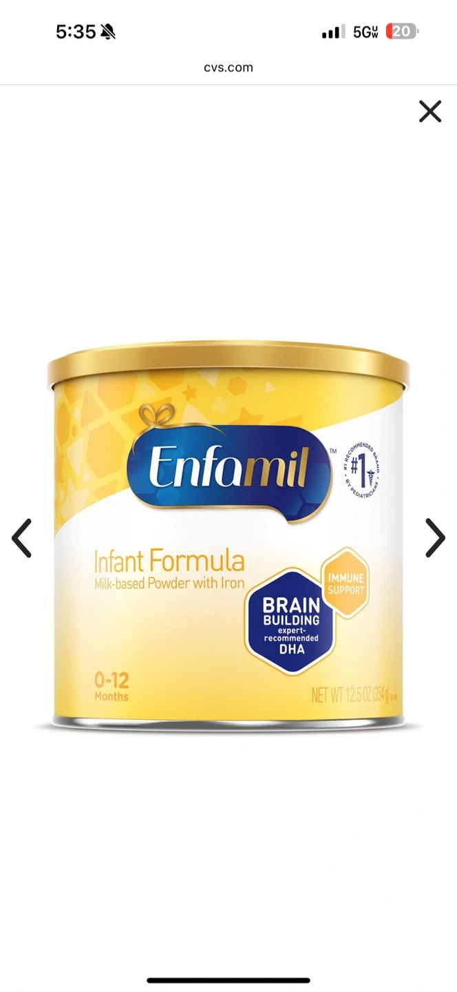 Selling a can of Enfamil Infant Formula, milk-based powder with iron. It's suitable for babies aged 0-12 months. It has brain-building DHA and immune support nutrients. Net weight is 12.5 oz (354g)I have 10 can