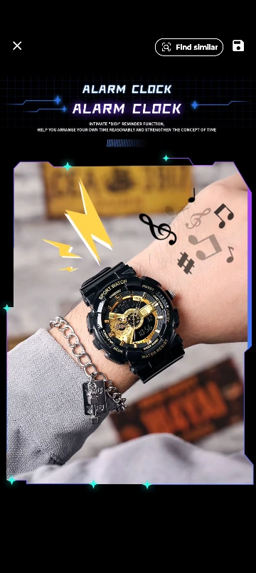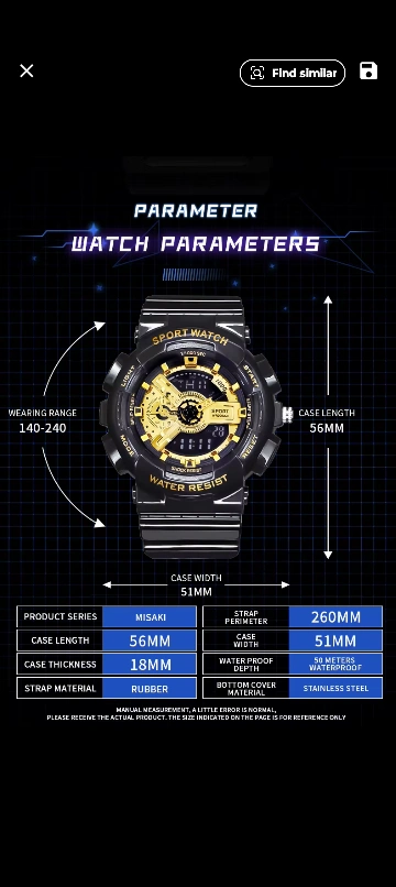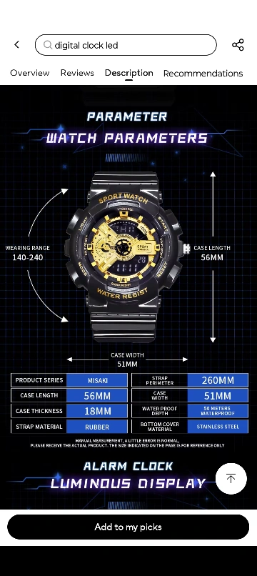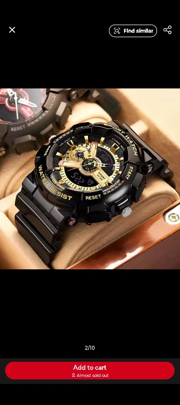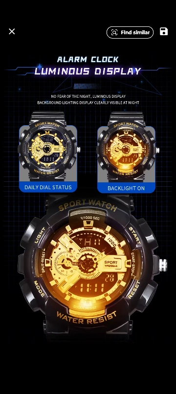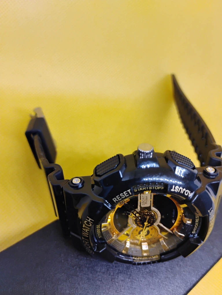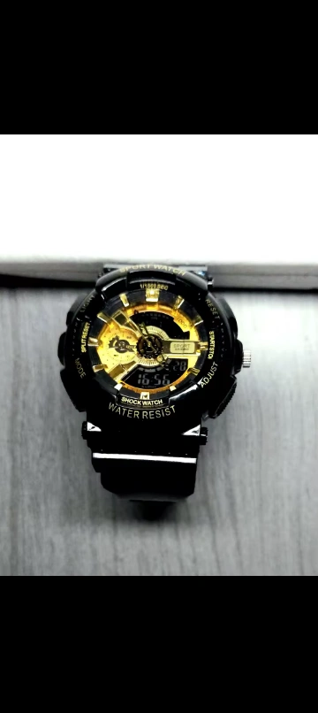 Digital sport watch. Black band and face. Gold accents. Water resistant. Multiple displays. brand new