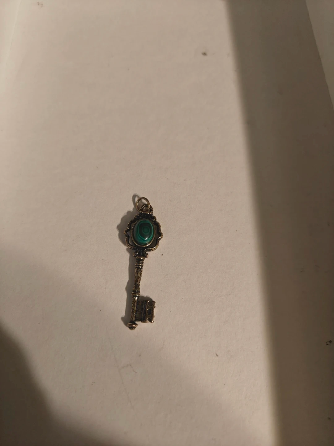Vintage Key Charm with Malachite Stone
