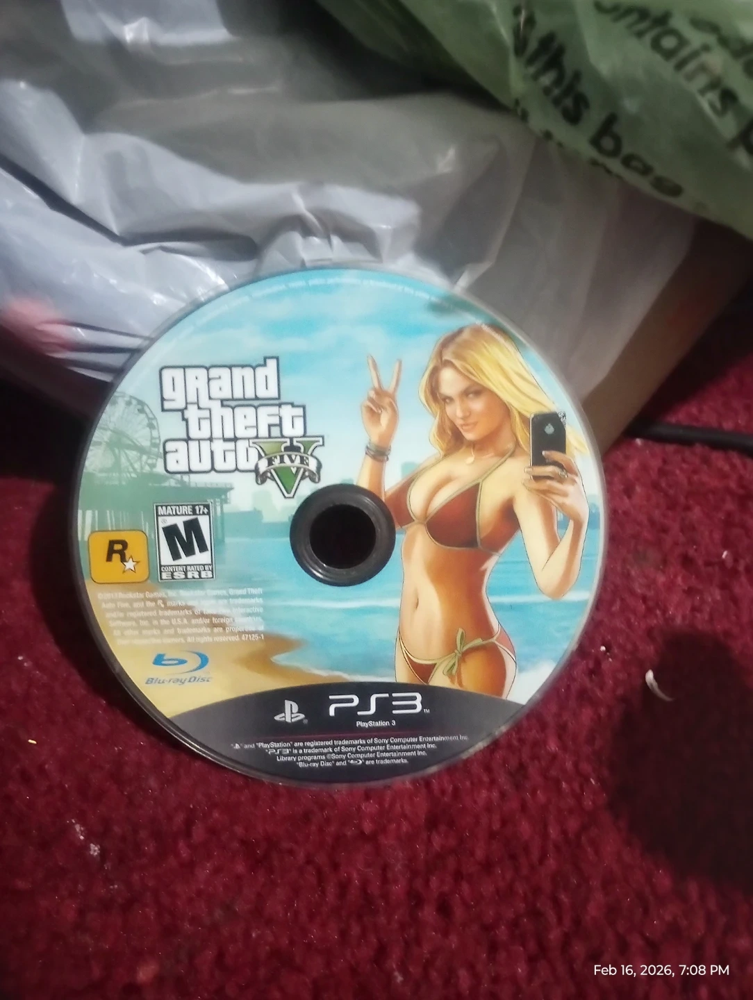 This is the Grand Theft Auto V Blu-ray Disc for PlayStation 3. It's rated Mature 17+ by the ESRB. The disc is for PS3 consoles.