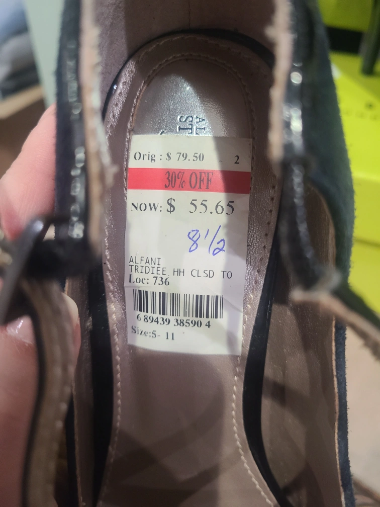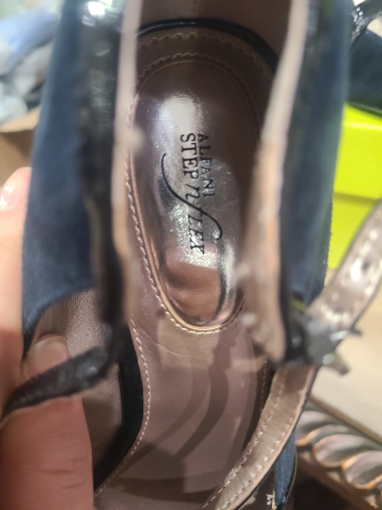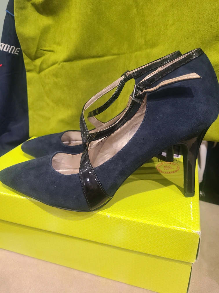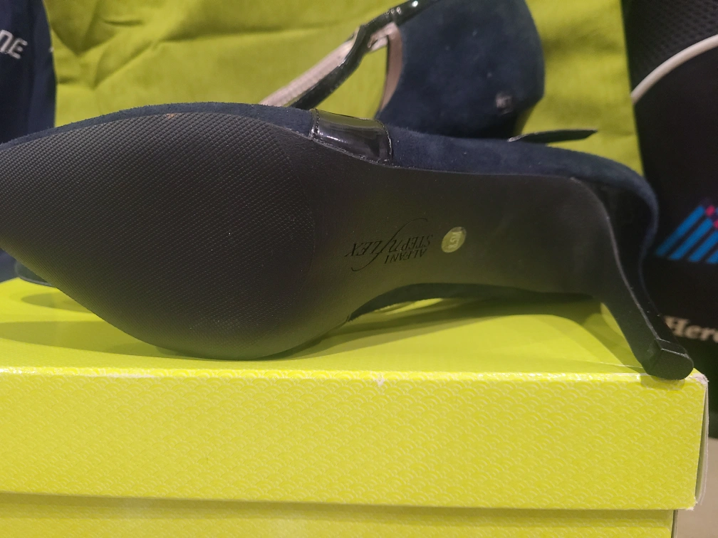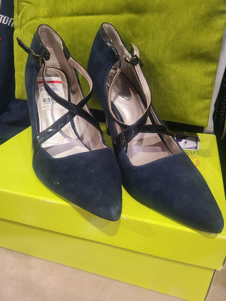 brand new - I'm selling a pair of Alfani Step N Flex heels in size 8.5. They're a stylish navy blue color with a patent leather accent. Originally bought for $79.50, they're in great condition!