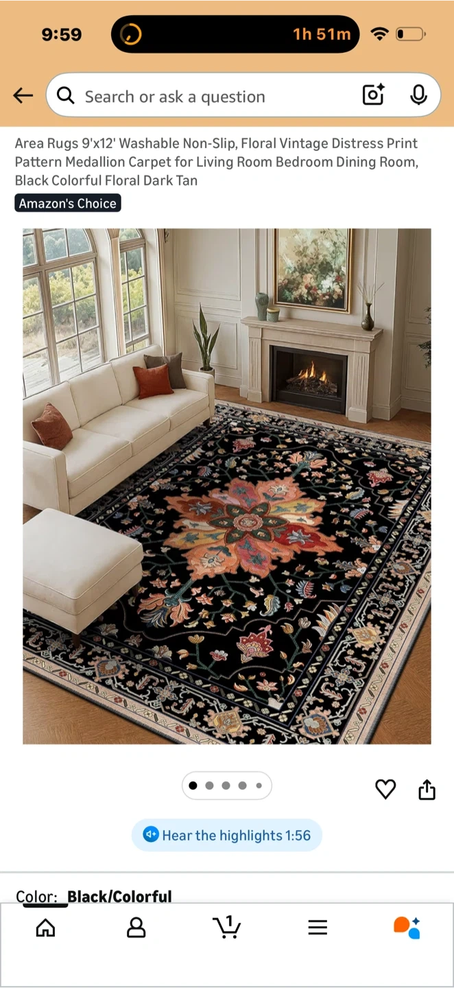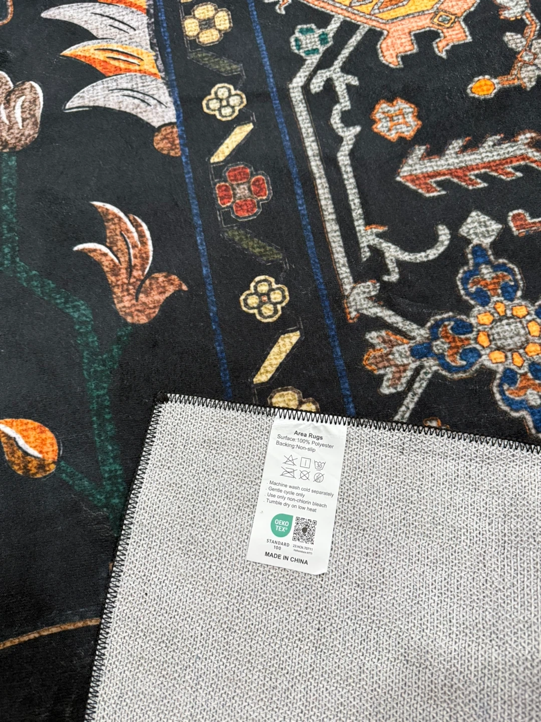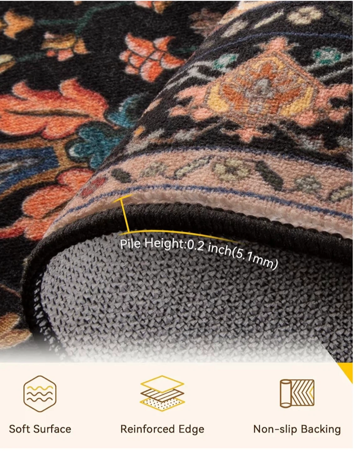 Vintage Floral Medallion Area Rug - Black/Colorful*