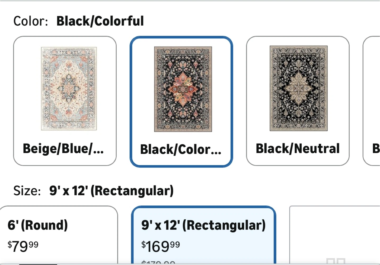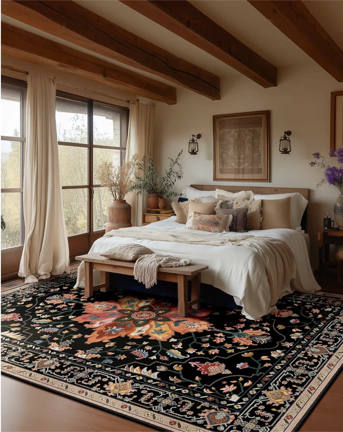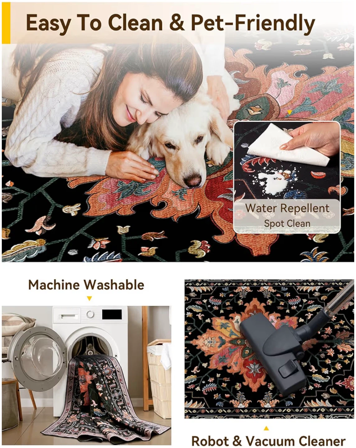 Vintage Floral Medallion Area Rug - Black/Colorful*