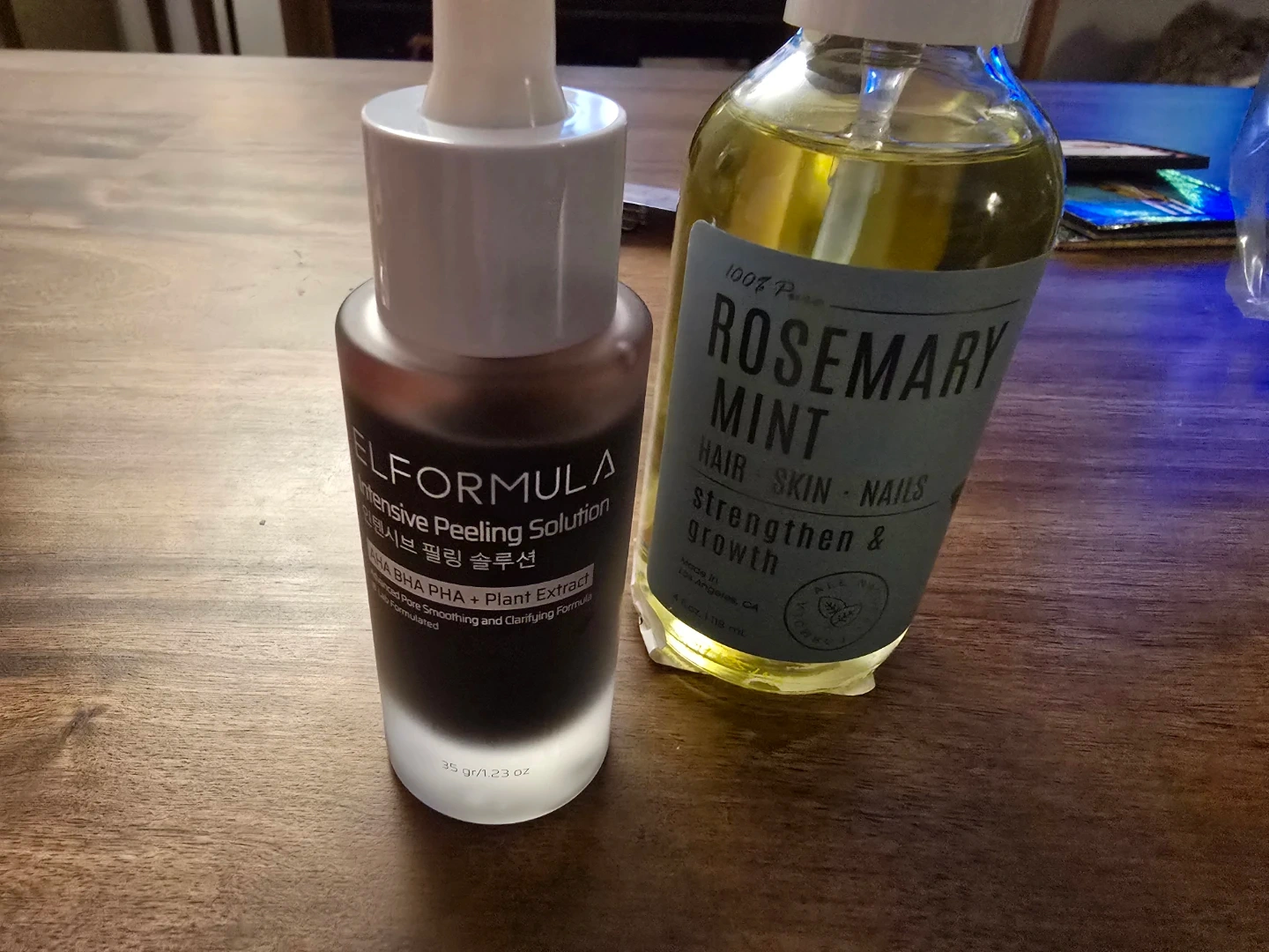ELFORMULA Intensive Peeling Solution with AHA BHA PHA + Plant Extract. 35 gr / 1.23 oz. All Well 100% Pure Rosemary Mint Oil for Hair, Skin, and Nails. Strengthen & Growth. 4 oz / 118 ml.