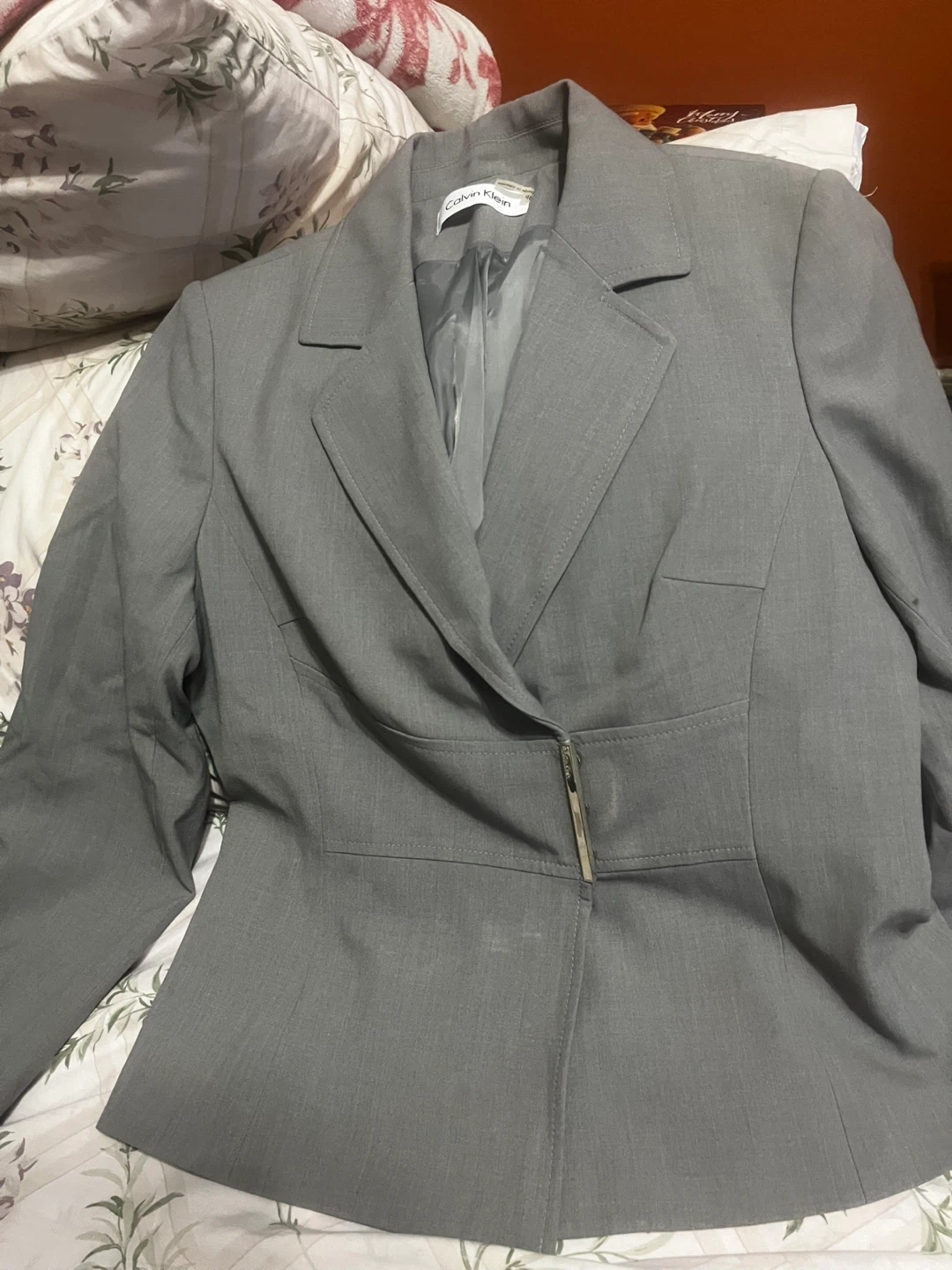 The outer shell is 63% polyester, 33% rayon, and 4% spandex, while the lining is 100% acetate