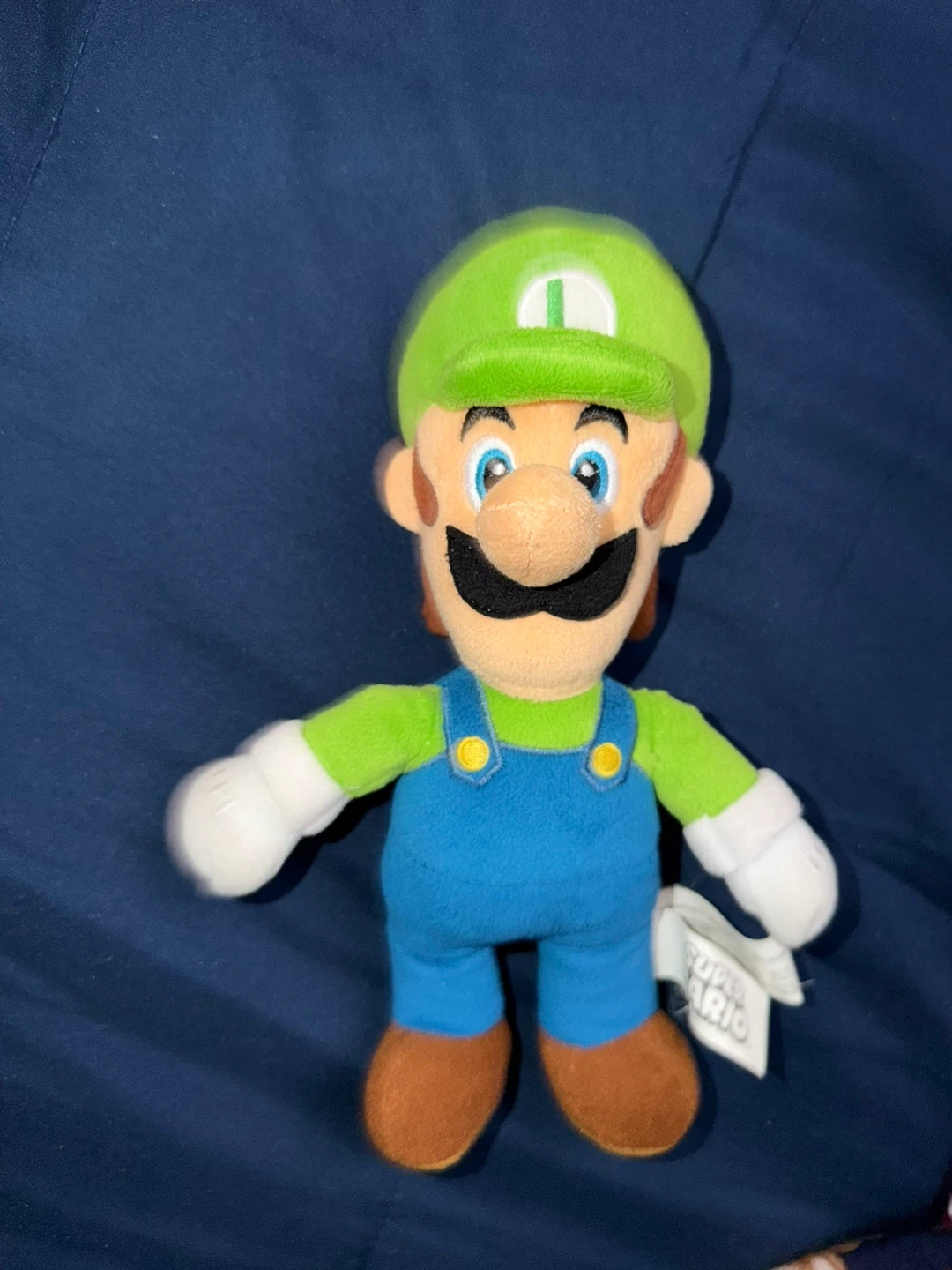 Selling a cute Luigi plush doll from Super Mario! It's in great condition and ready for a new home. Perfect for any Super Mario fan or collector
