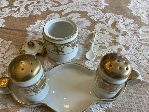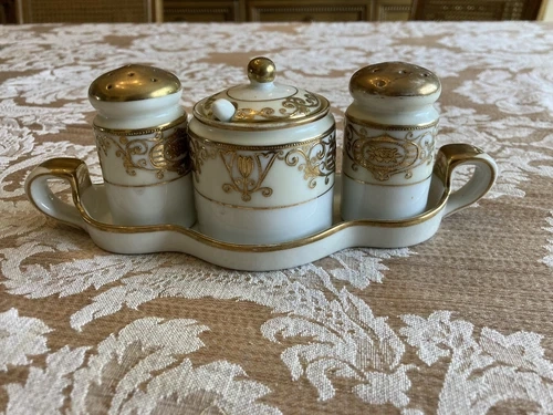 Rare Noritake White & Gold Condiment Set