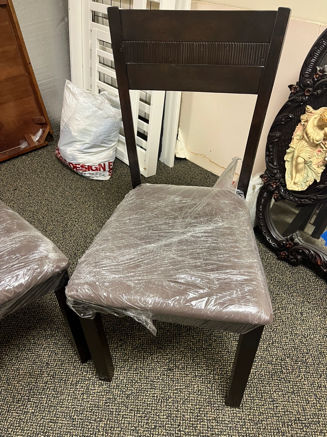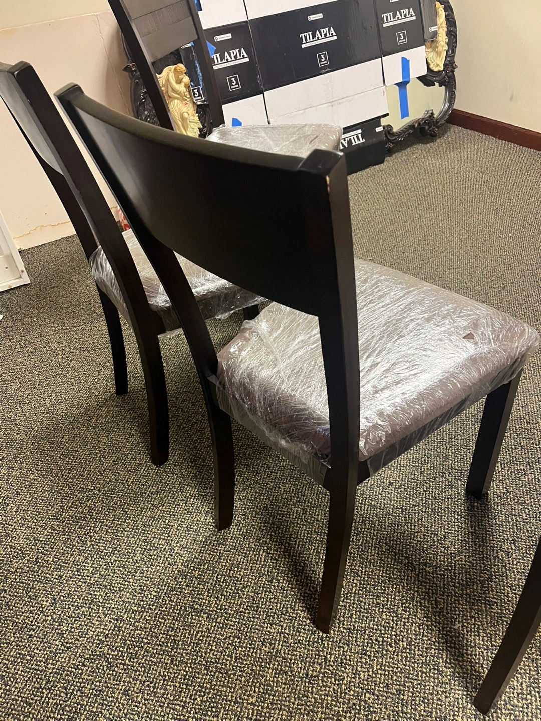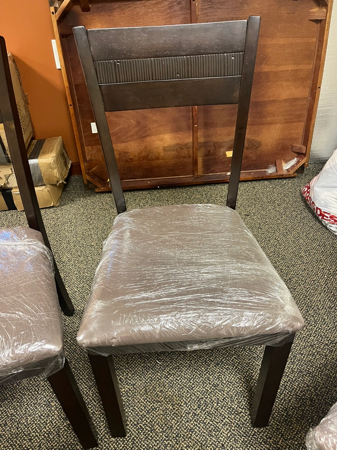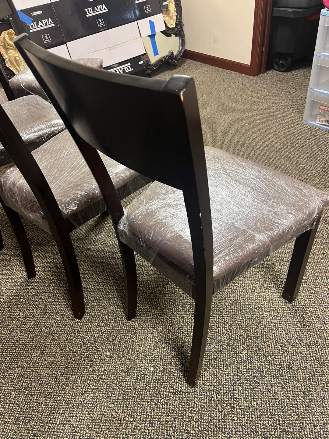 Espresso color dining room table with 4 chairs. Price includes all pieces. It has some minor dings and scratches but nothing major. It has been in storage so the chair seats have been covered in plastic and the chair legs have been taken off. All the hardware is included and I’m 99% sure it’s all there (so kindly be aware of that 1% doubt since it’s been a long time). It will be easy to load in your car this way tho!