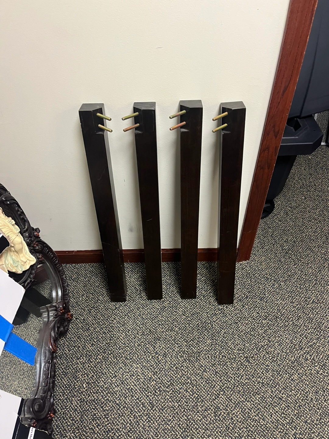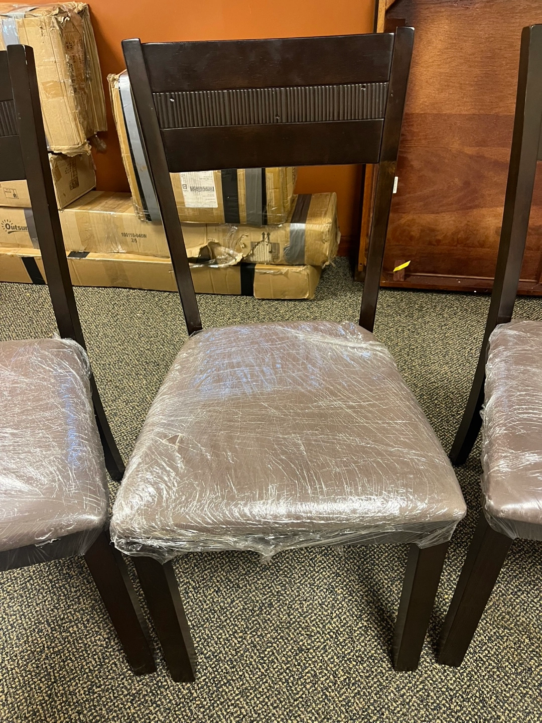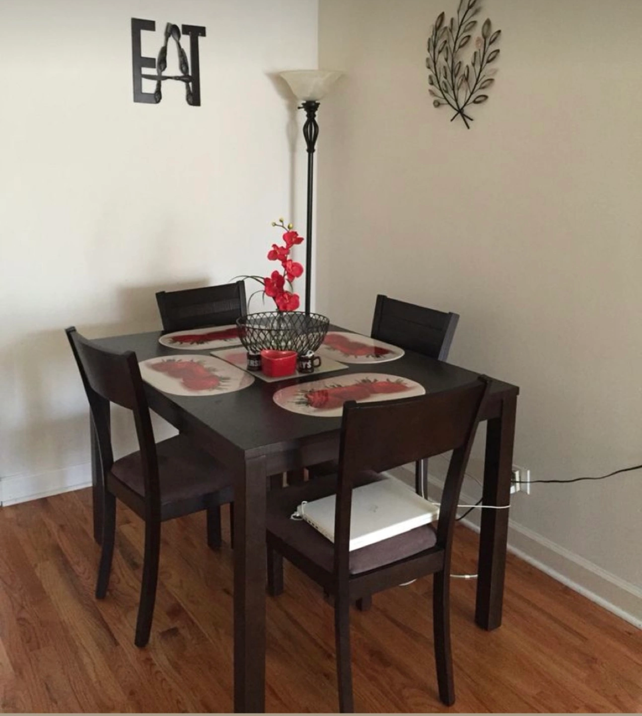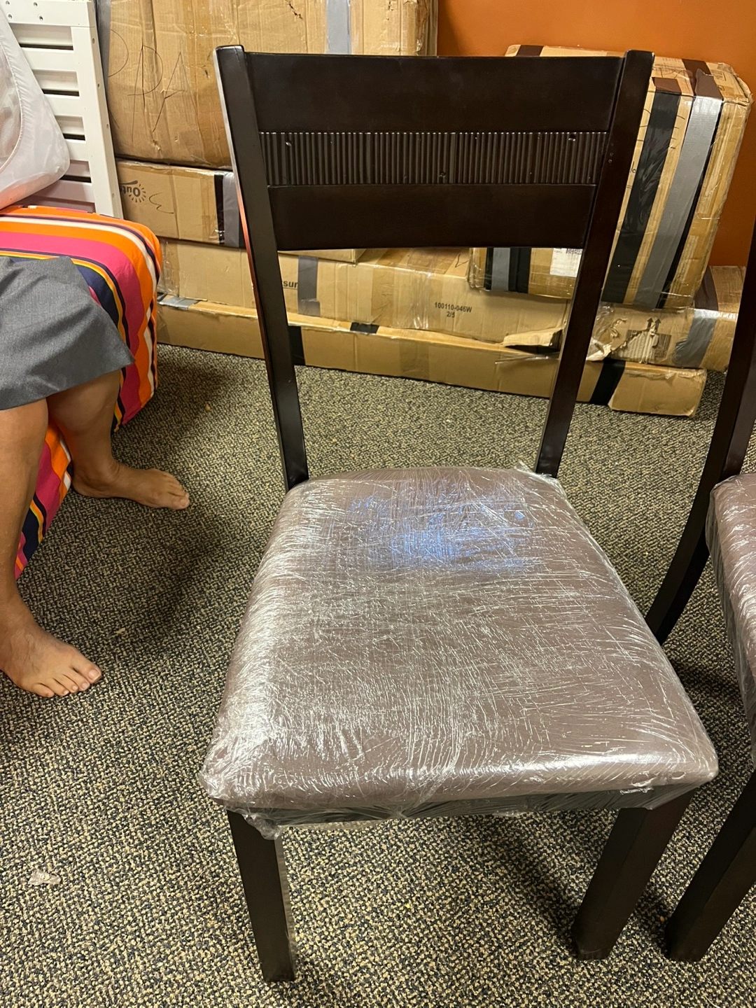 Espresso color dining room table with 4 chairs. Price includes all pieces. It has some minor dings and scratches but nothing major. It has been in storage so the chair seats have been covered in plastic and the chair legs have been taken off. All the hardware is included and I’m 99% sure it’s all there (so kindly be aware of that 1% doubt since it’s been a long time). It will be easy to load in your car this way tho!