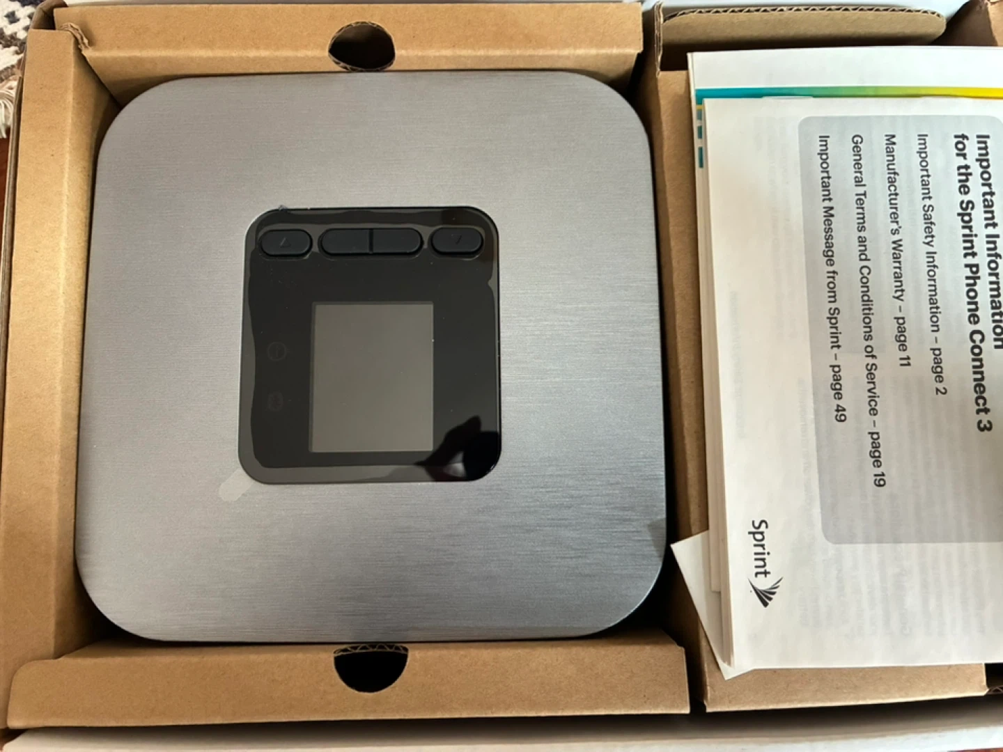 Sprint Phone Connect 3 mobile hotspot. It's a compact device for connecting to the internet. Includes essential documentation.