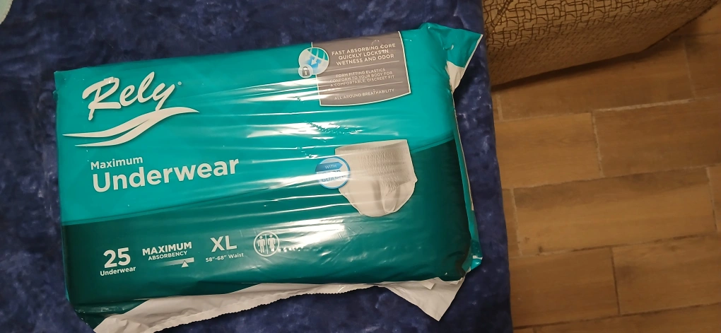 New, unopened package of Rely Maximum Underwear. Size XL. 25 count. Maximum absorbency. Easy pull-on and pull-off design.ask about deals 2 for 10