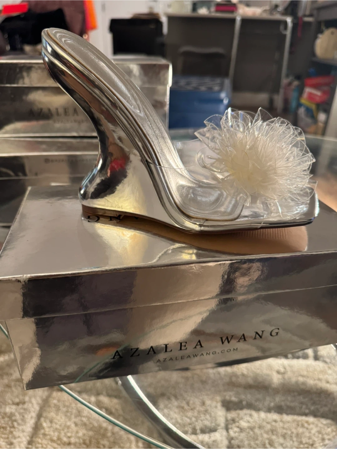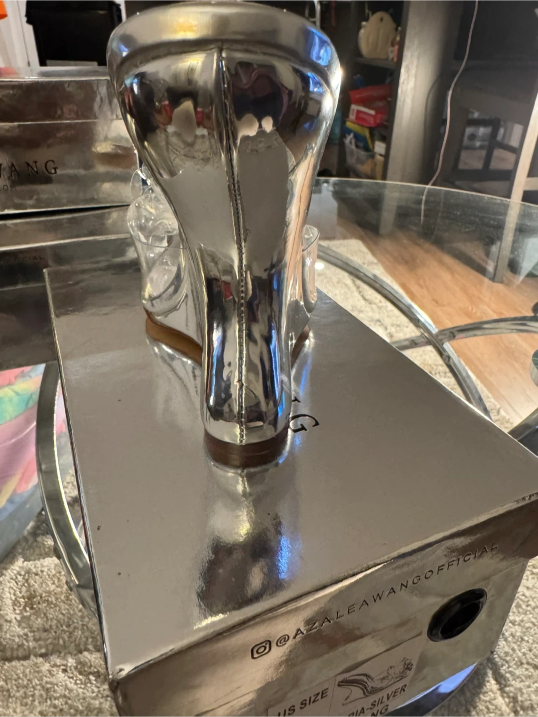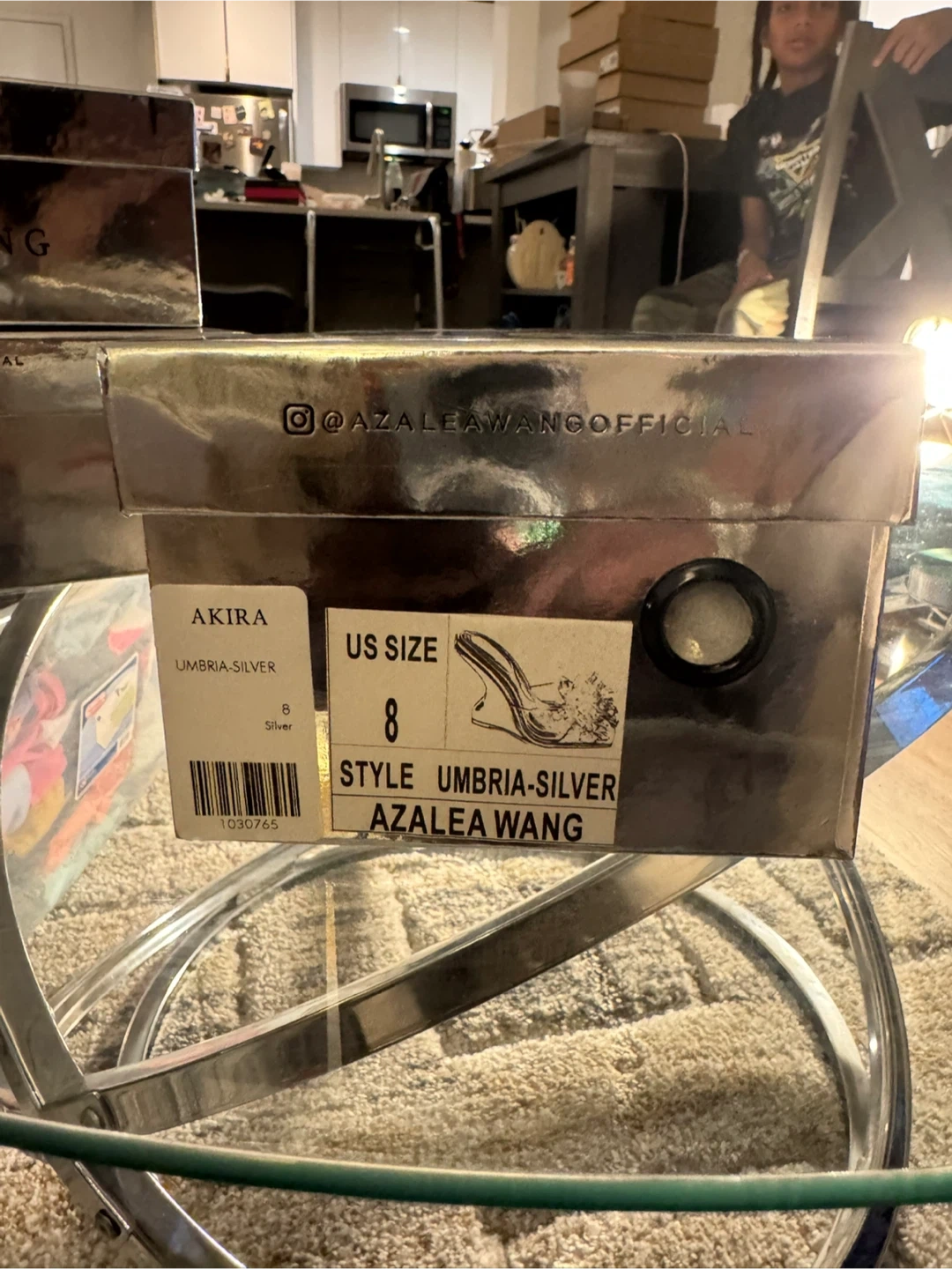 Selling a pair of Azalea Wang Akira Umbria-Silver heels in US size 8! These heels are brand new and come with the original box. The style is Umbria-Silver. They are a unique and stylish addition to any wardrobe