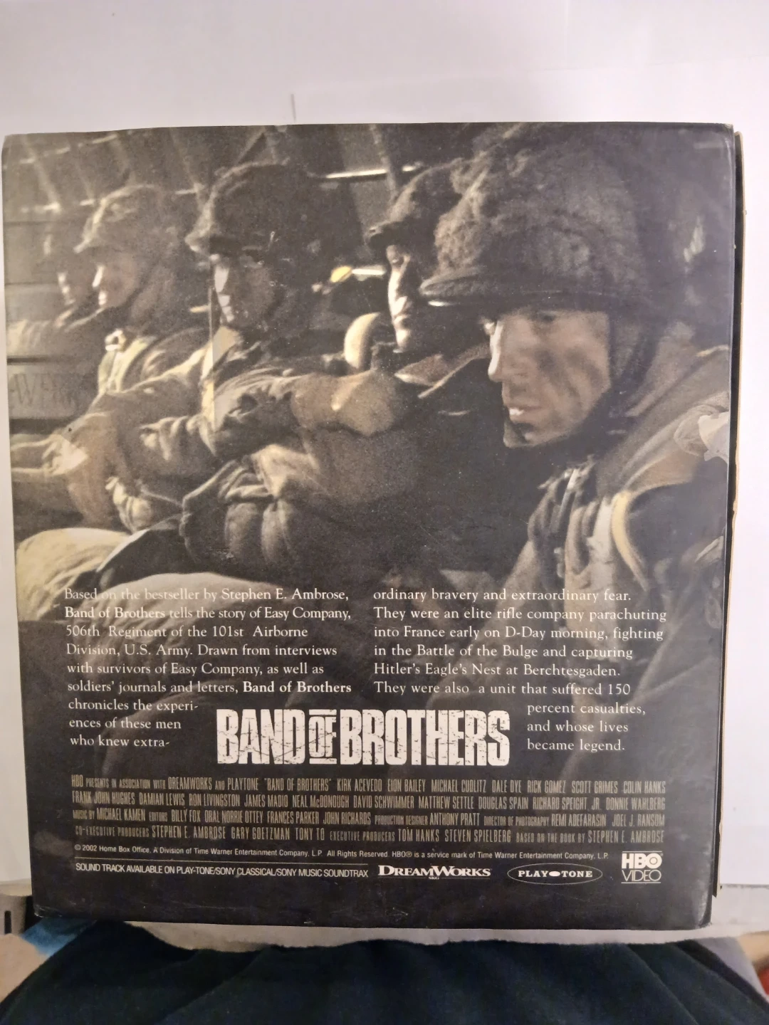 This is the complete Band of Brothers VHS box set, a HBO miniseries presented by Tom Hanks and Steven Spielberg. It's based on Stephen E. Ambrose's book and chronicles the experiences of Easy Company. Includes original box packaging.
