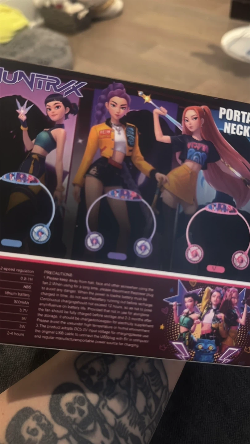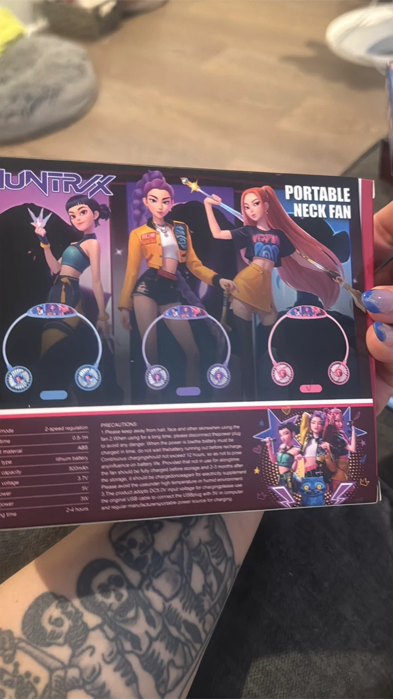 This is a HUNTRIX portable neck fan. It features 2-speed regulation. The fan has a lithium battery capacity of 800mAh and provides 2-4 hours of use. Great for staying cool on the go! $ 10