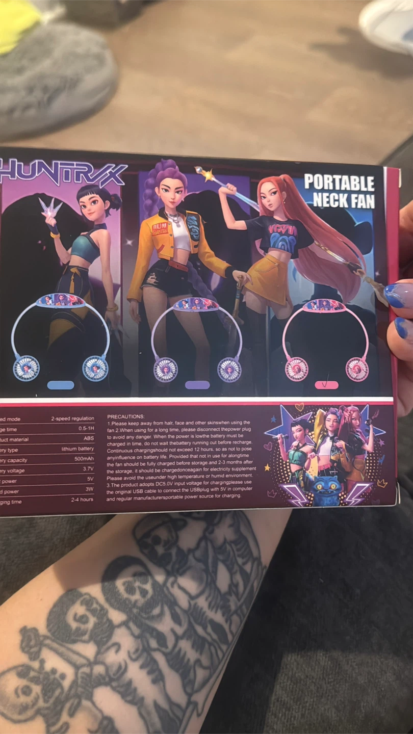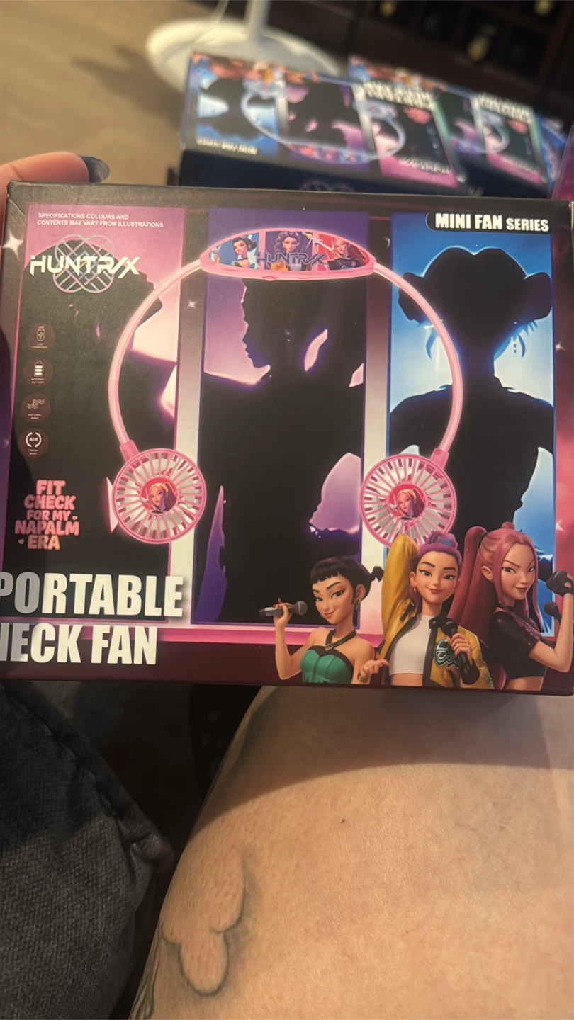 This is a HUNTRIX portable neck fan. It features 2-speed regulation. The fan has a lithium battery capacity of 800mAh and provides 2-4 hours of use. Great for staying cool on the go! $ 10