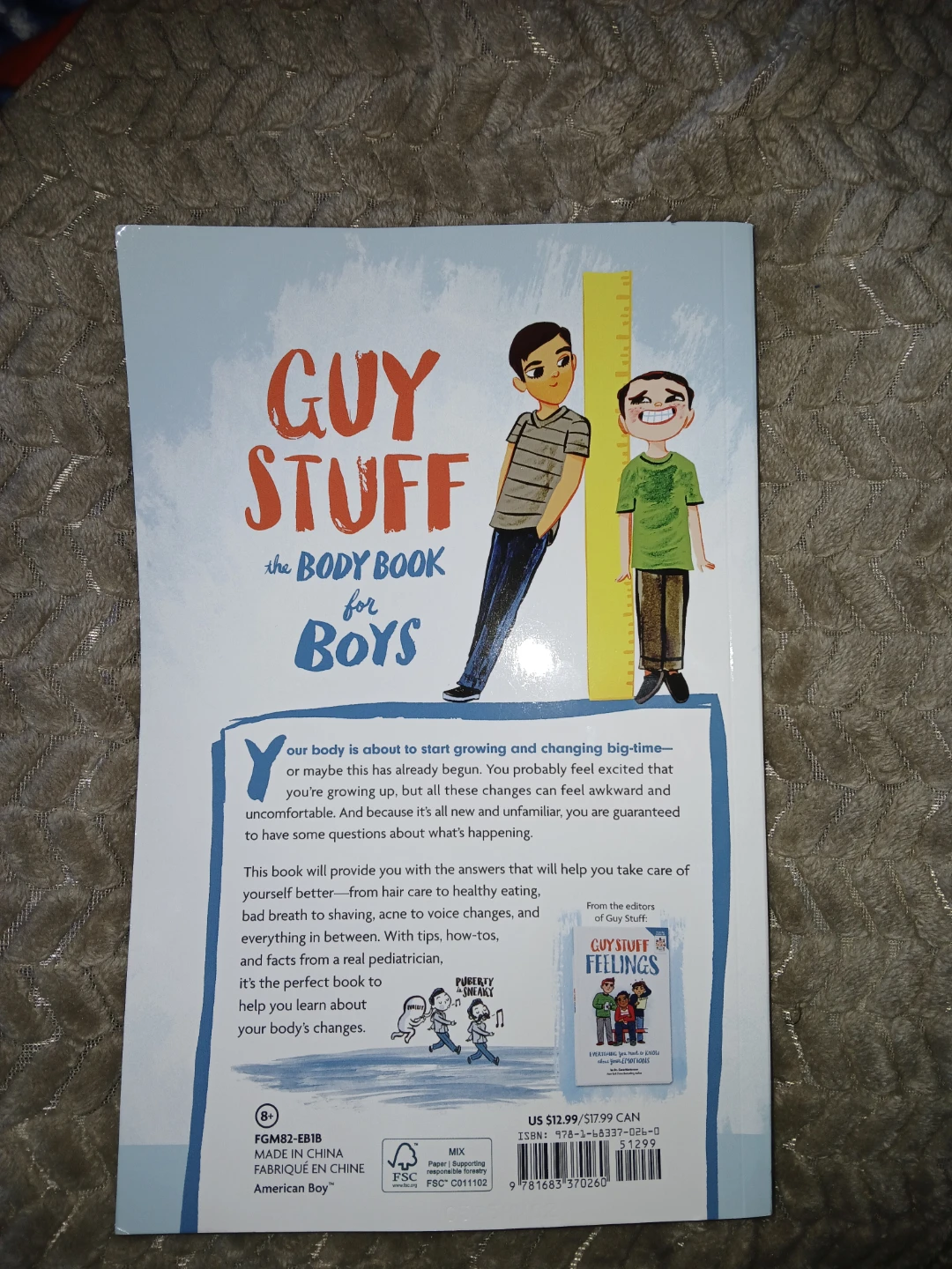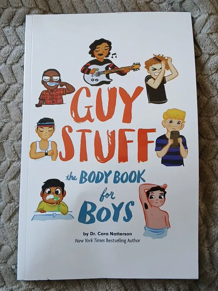Selling “Guy Stuff: The Body Book for Boys” by Dr. Cara Natterson. It's a helpful book for boys going through changes, covering everything from hair care to healthy eating. Originally priced at $12.99.