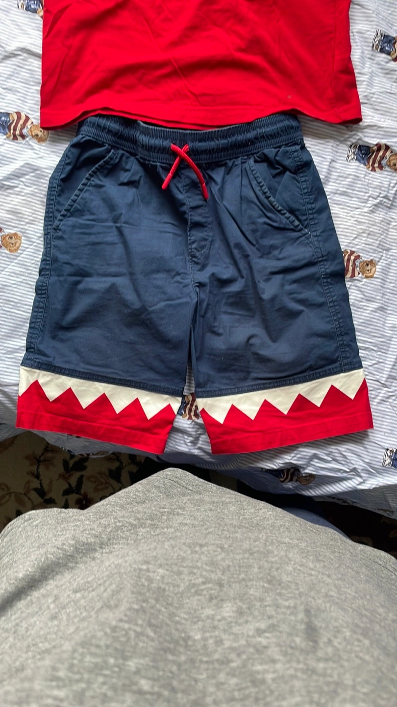 Adorable boys' outfit. Red short-sleeved t-shirt features iconic Polo Pony logo. Matching navy shorts with red and white accents. Great for summer.