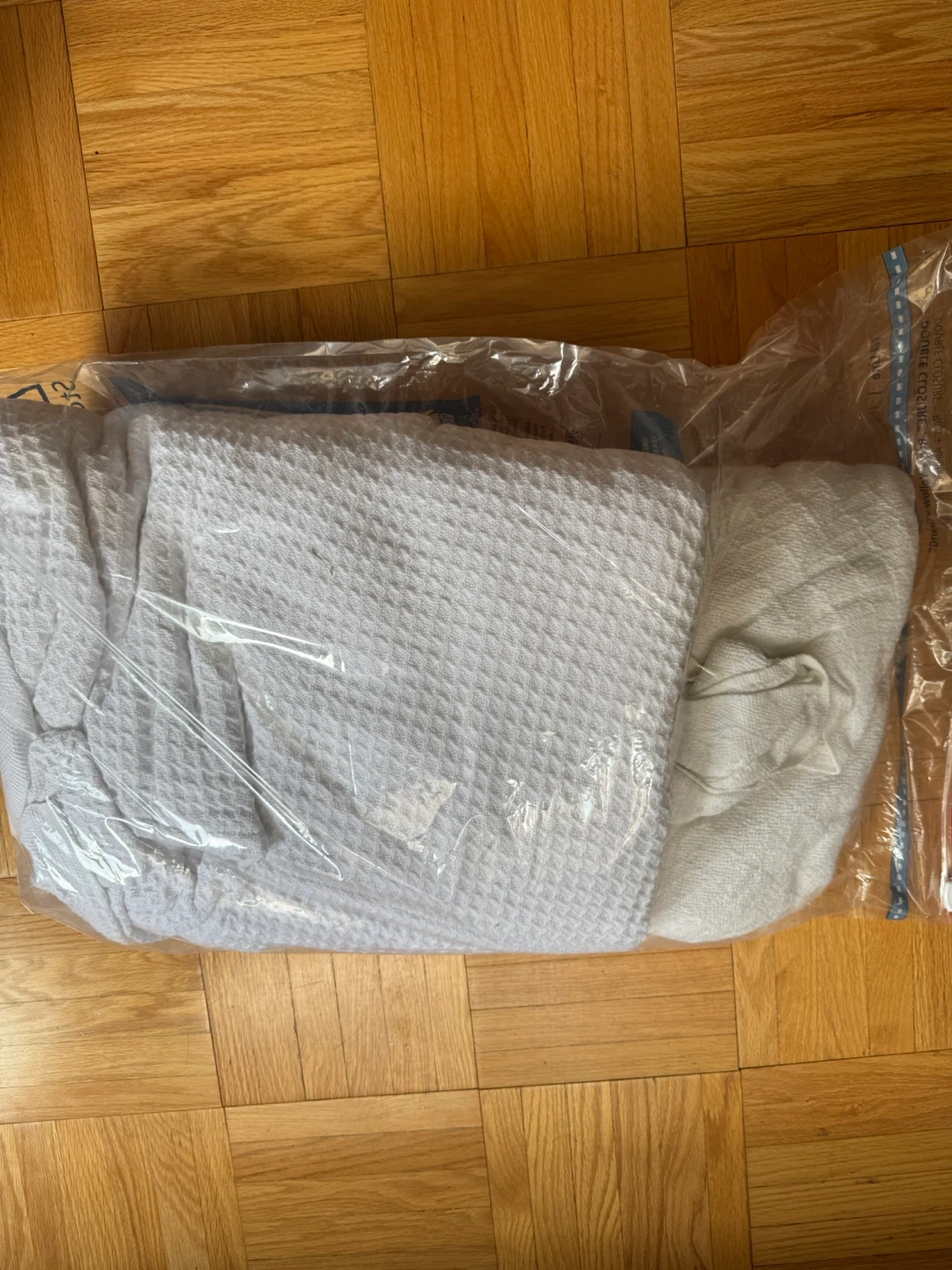 Two like new (barely ever used) cotton blankets that fit a full size bed! I kept them sealed in plastic vacuum bag so they should be good as new! Hoping someone can use them otherwise I’ll have to textile recycle them.