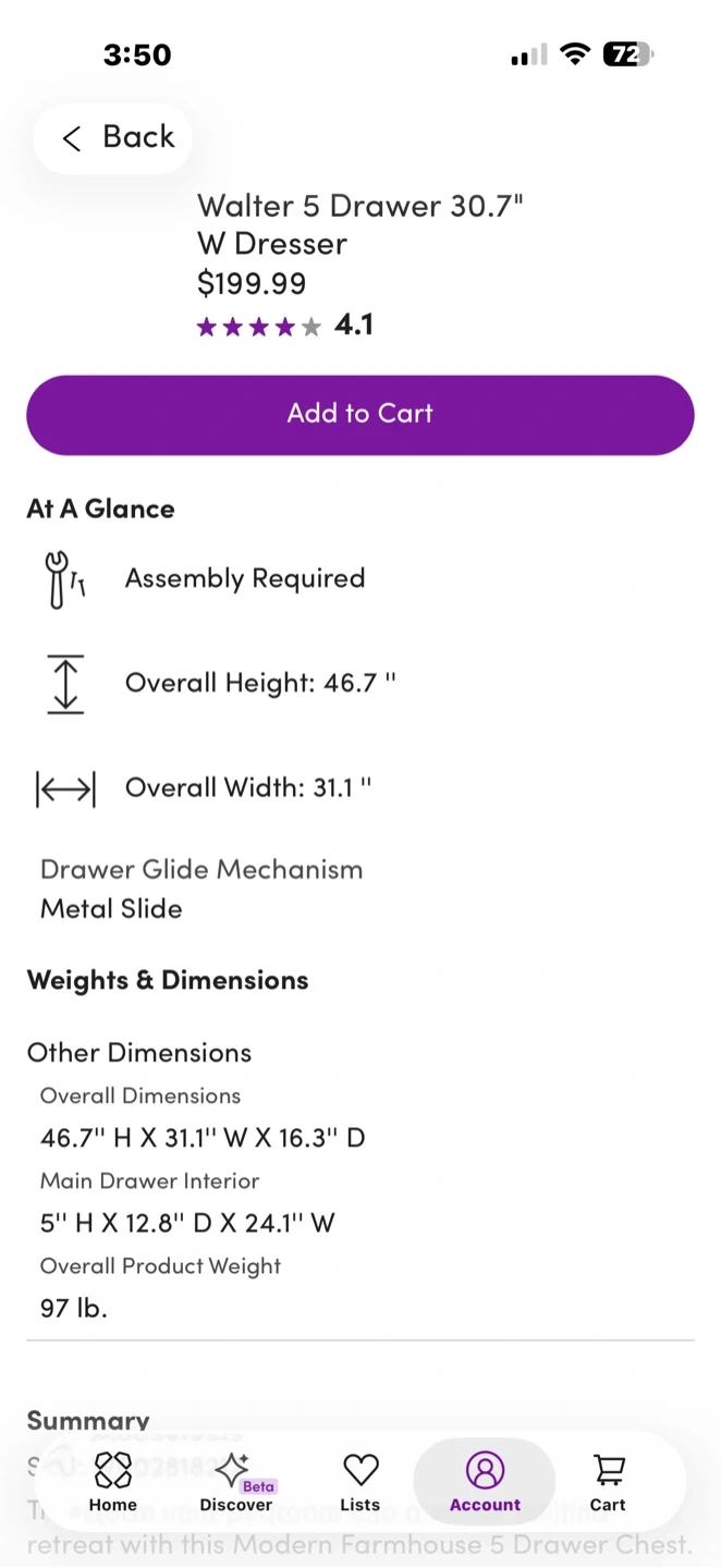 - Dimensions46.7" H X 31.1" W X 16.3" D