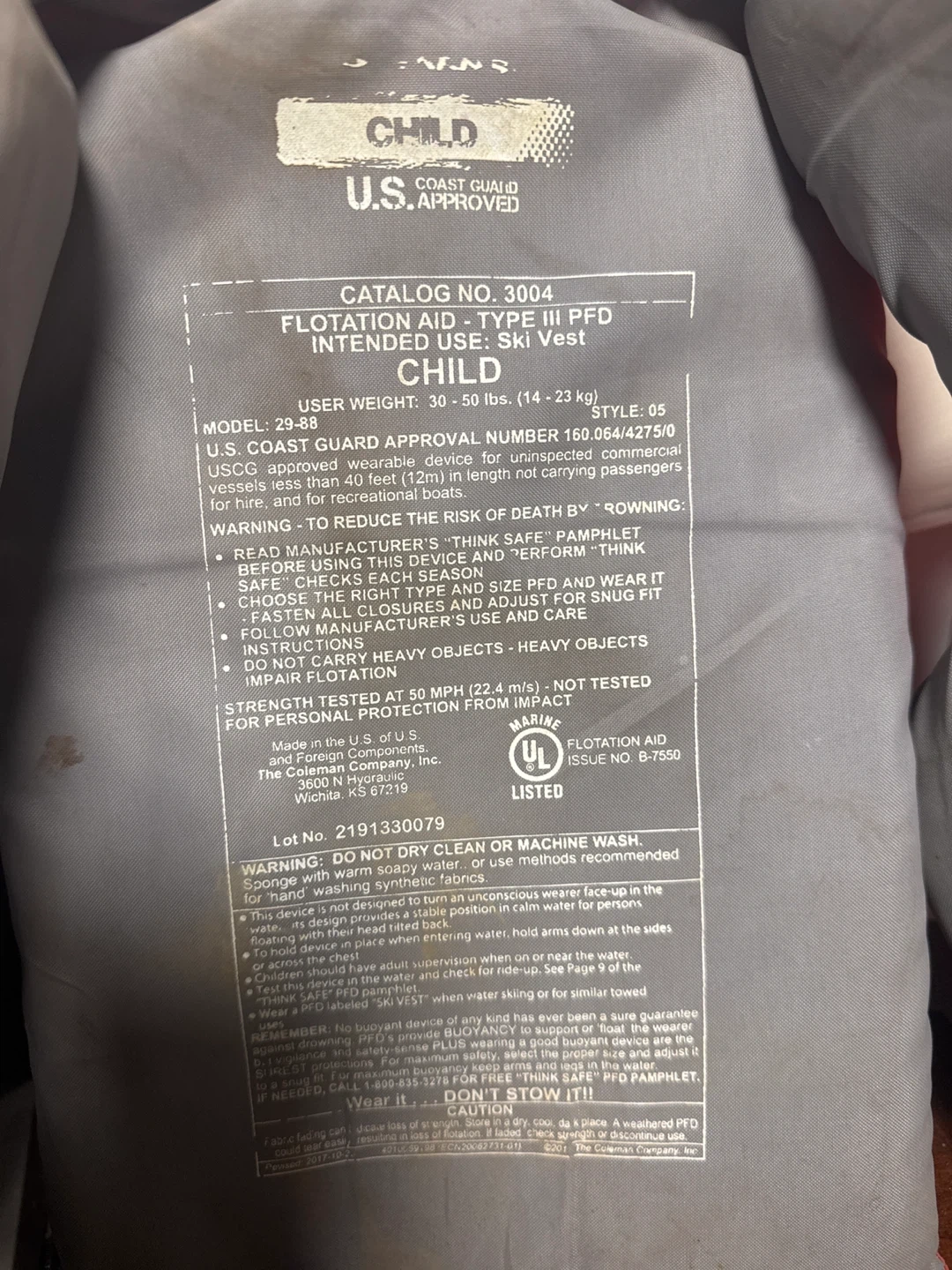 Don’t be a dummy save your buddy. Too many kids die due to ill fitted vest or NO vests at all due to un warranted neglect. Please if you don’t have one come get one . All I ask is once your child is out grown it pass it along . Safety is never 2nd it always first!!!
