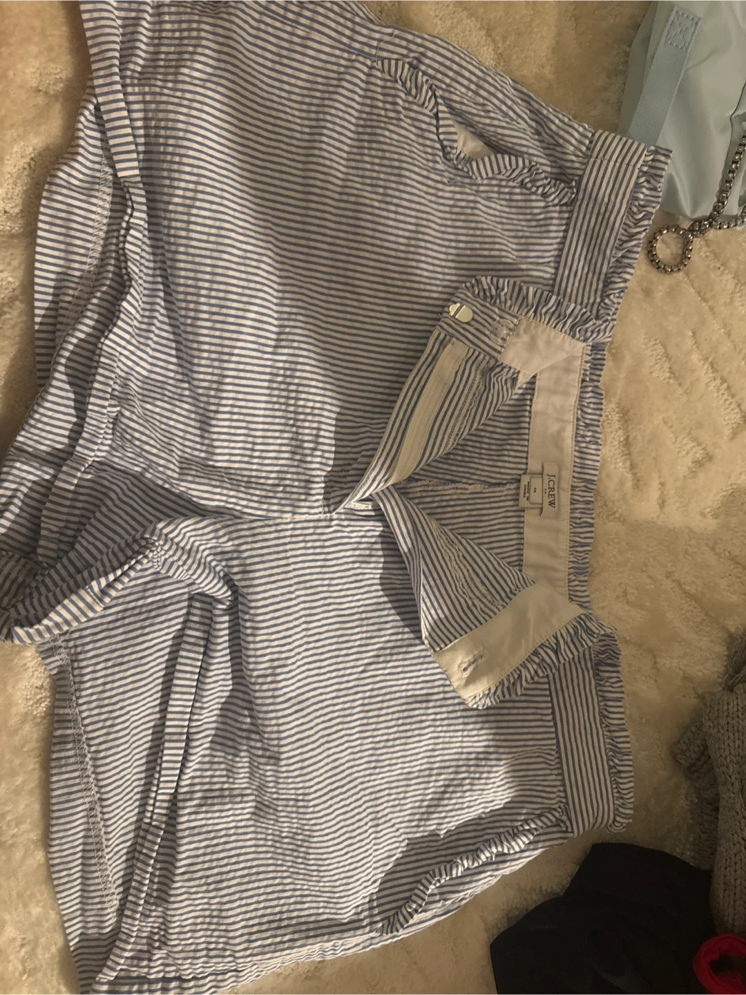 Cute J. Crew shorts in a blue and white striped pattern! They are a size 14 and in great condition. Perfect for summer!