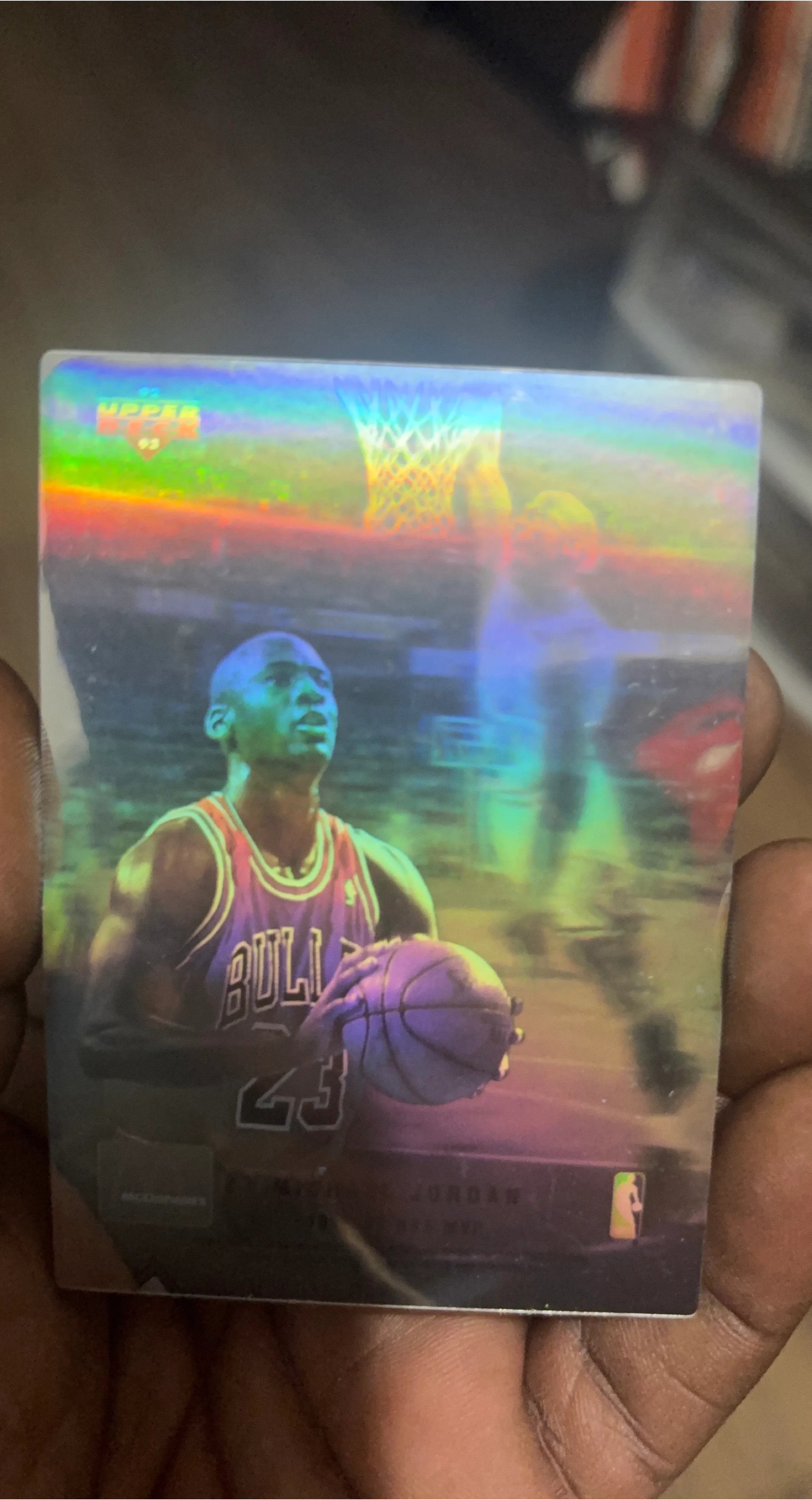 This is a 1992 Upper Deck Michael Jordan basketball card, number 43. It features a holographic design. The card is from the McDonald's promotion.
