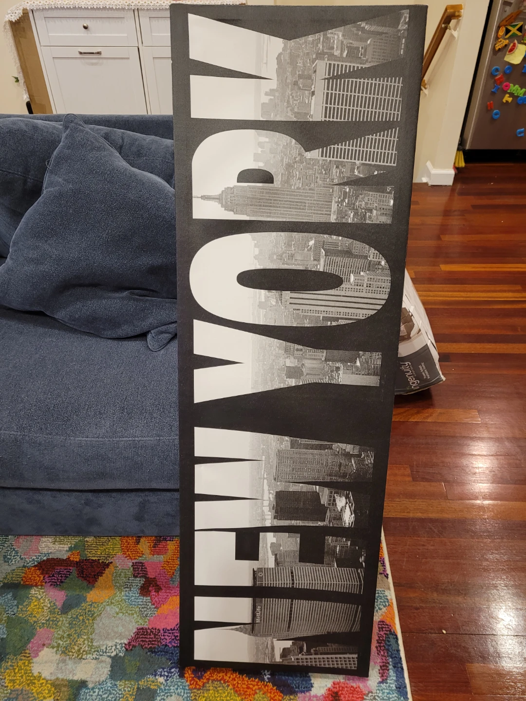 1 / 31 / 3Buy & SellNew York City Skyline Canvas Wall ArtNew York City Skyline Canvas Wall Art$15Large canvas art featuring a black and white "New York" text overlay on a cityscape. It's a striking piece for home decor. Dimensions are approximately 16 x 48. WHERE TO MEET85th Street & Bay ParkwayView MapSELLERverifiedReeseBensonhurst1174 reviews2 chats·1 favorites·48 viewsSEND CHAT TO SELLERHi Reese! I’m interested in your listing.Hi Reese! I’m interested in your listing.Get the Karrot app to chatSign In to chat
