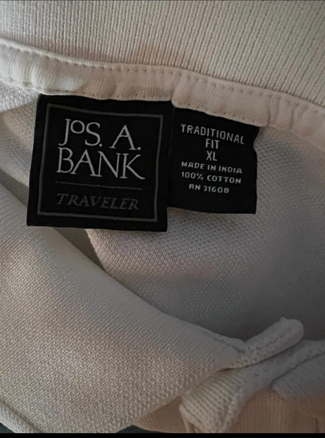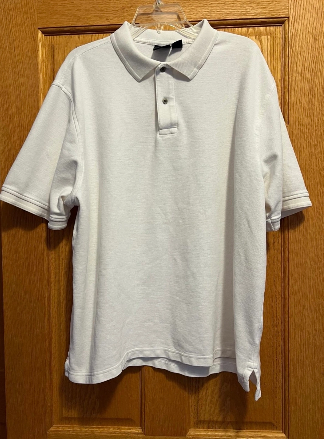 Two short sleeve polo shirts. TWO- The Traditional Fit Polo Shirt from Jos. A. Bank takes you from Sunday brunch to the office in style. Colors: White and Blue - XL
